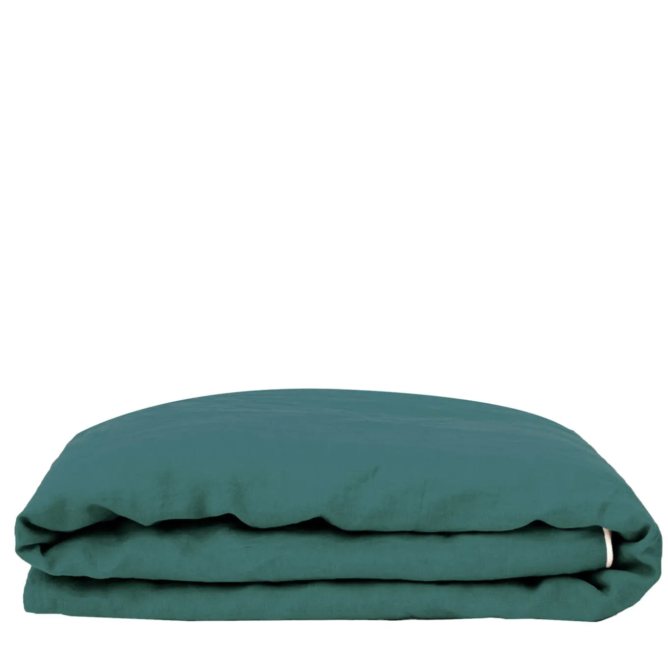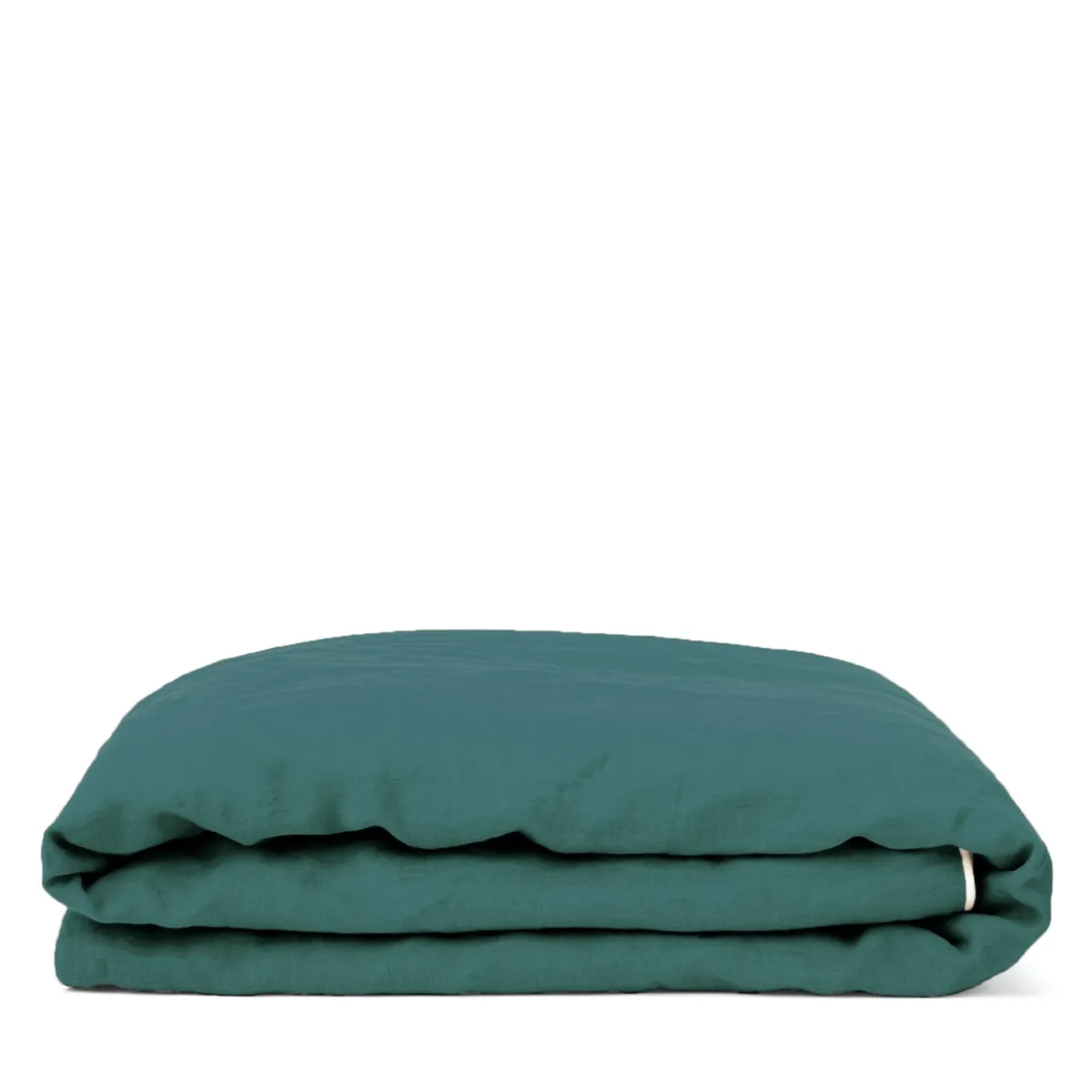 This forest green linen blanket offers lightweight luxury, making it a stylish addition to any bed. Perfect as a light cover in summer or a warm layer in winter, it features a natural linen bottom paired with a top color and piping in the shade of your choice. A versatile and elegant piece that enhances both comfort and style year-round. Available in various sizes, please ask the concierge for other details.