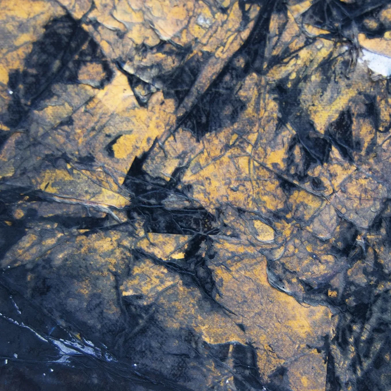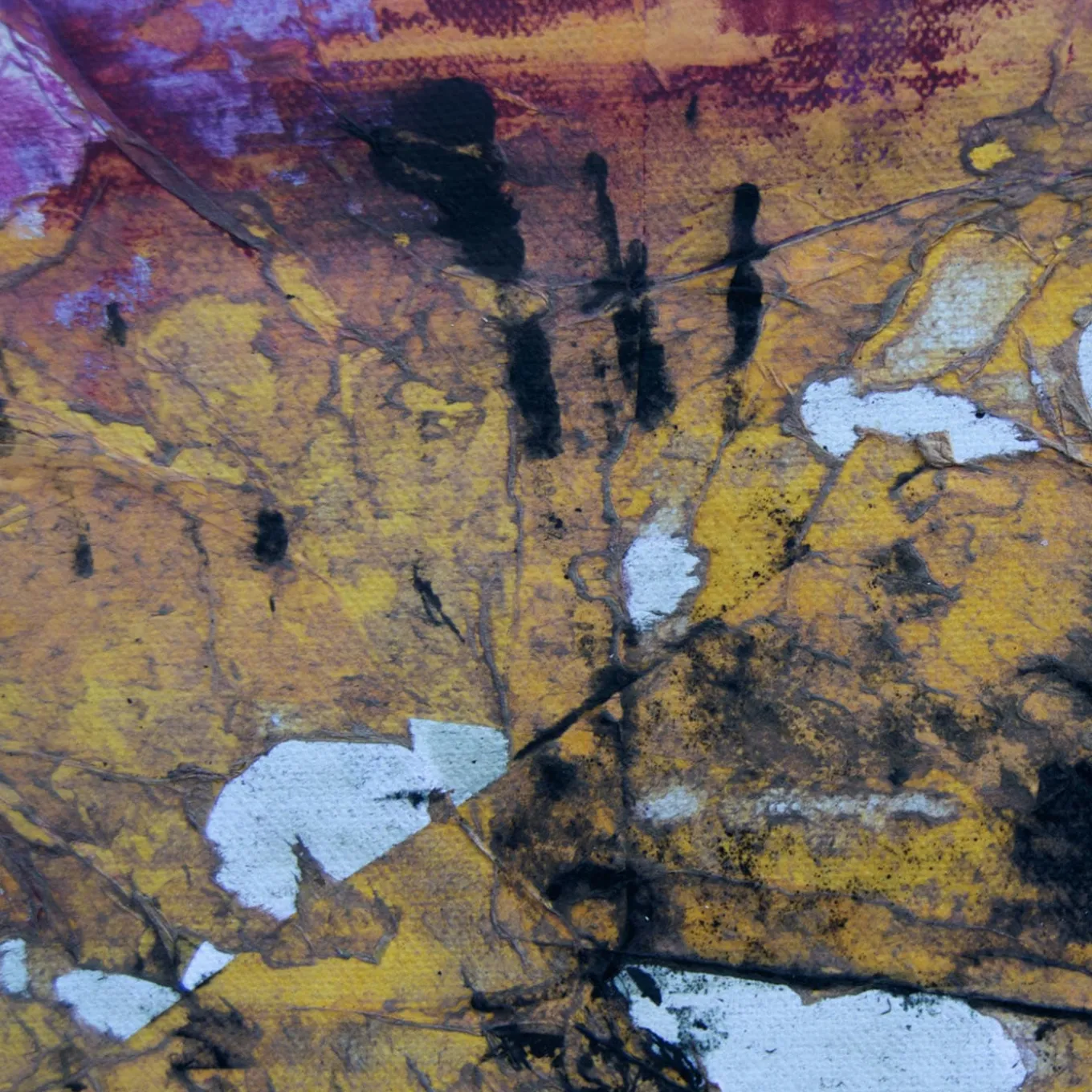 An ode to the warm hues fall offers, this painting will infuse any contemporary decor with energy and color. Acrylic colors – with a prevalence of gold against black and red accents that evoke fire – are applied with secure brushstrokes on multiple layers of tissue paper that, wrapped around the canvas, lends the piece its distinctive textural appeal. The piece is delivered unframed and is supplied with an authenticity certificate.
