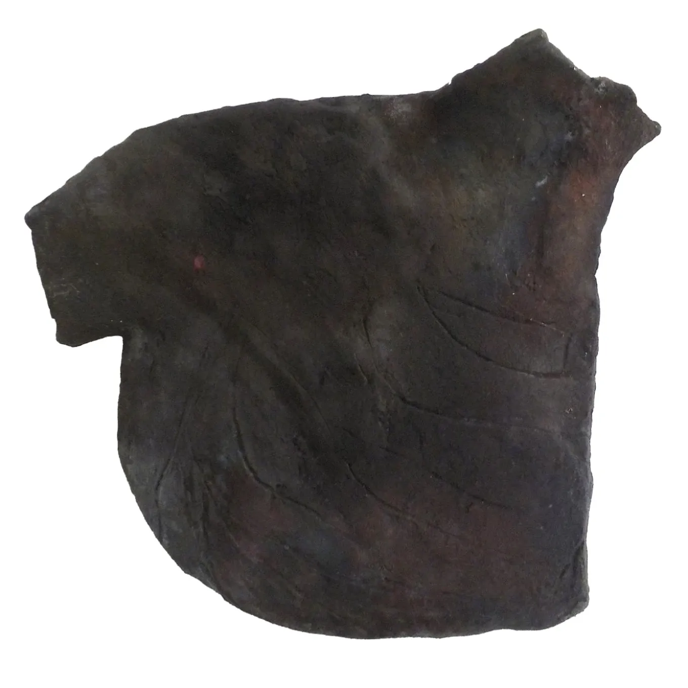 The exploration of the human body began with iron or tar cut-out shapes, later printed on paper, which evolved into three-dimensional ceramic sculptures, using raku firing or synthetic resins with marble powder. In this piece, the anthropomorphic form is absorbed by the bronze color created through double firing, evoking a fossilized image frozen in time. The technique combines double-fired ceramics with the raku process.