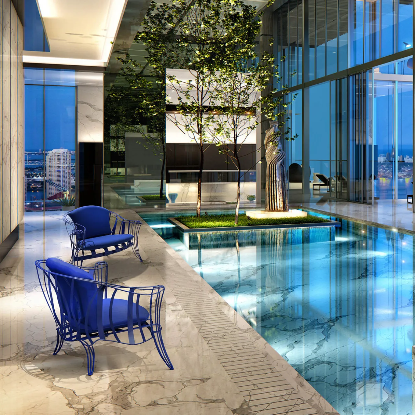 Part of the Opus Garden collection, this stunning outdoor armchair is an ideal addition to an eclectic patio or contemporary terrace. Its sinuous curves, distinctive of the Opus collection, were crafted of hand-bent iron that was treated with a rust-resistant blue finish. This piece can be purchased with or without the seat and back cushions, please ask the Concierge for details and pricing.