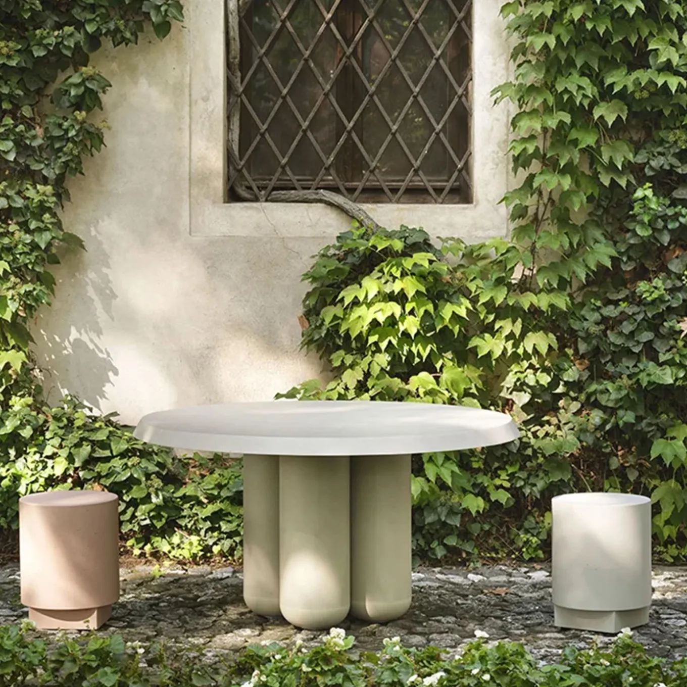 The Giudecca dining table features a slender round top paired with a sculptural base composed of four rounded elements, showcasing the textured versatility of cimento® in both surface and form. Offered in two sizes, ø140cm and ø160cm, this table blends effortlessly into various interior styles from classic to contemporary. Designed for both indoor and outdoor use, it suits domestic and contract environments, providing a distinctive touch of originality and style.