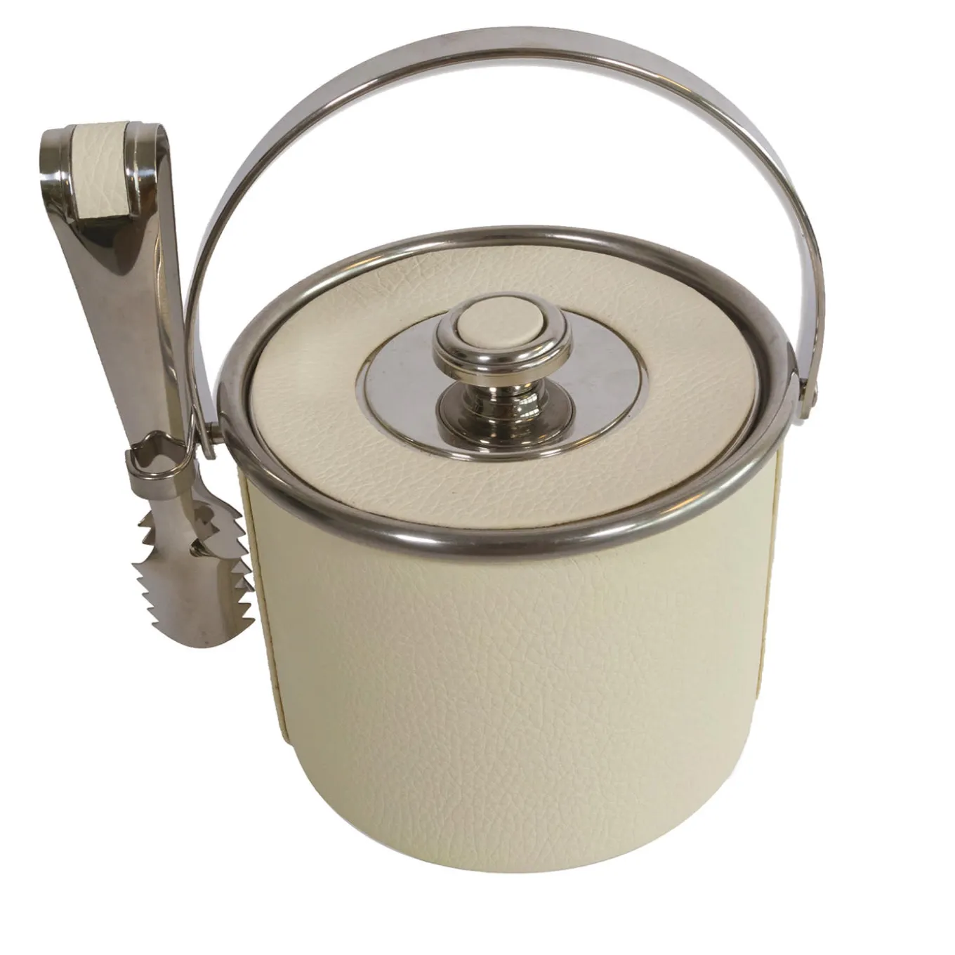 This extraordinary ice bucket with a lid from the Gold series will make an exquisite addition to a special dinner date in a contemporary decor style. Fashioned of stainless steel, it is wrapped by hand in a gorgeous full-grain leather upholstery rendered in a white tone. Available in other 13 colors to suit any color palette or taste, please check the Artemest catalog for details.