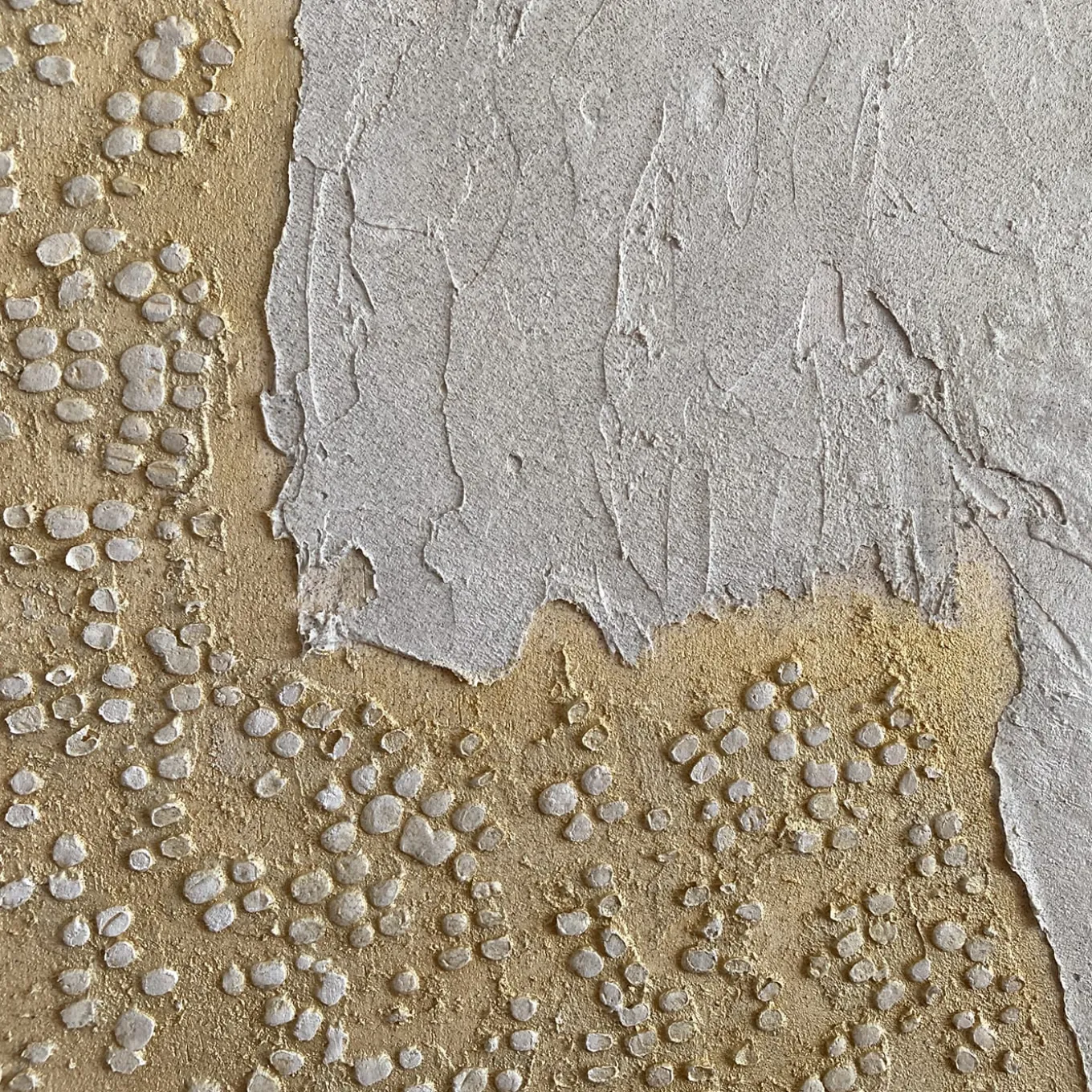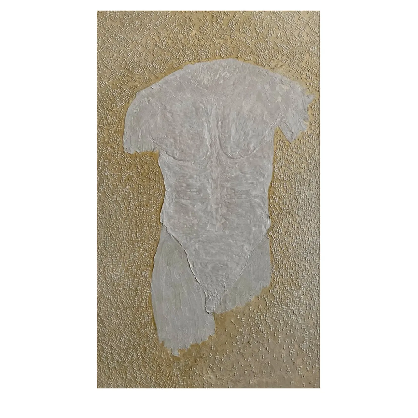 Inspired by the iconic grace of Greek statuary, this wall-mounted sculpture captures a timeless moment in motion. Crafted in resin, the textured figure stands out against a gold background, enriched with tactile pigments and intricate spatula work. The dimensional effect transforms it into a “wall sculpture,” achieved through a sophisticated blend of sands, resins, and adhesives. This artwork is a tribute to an enduring aesthetic, balancing historical homage with contemporary technique. Each painting is unique.