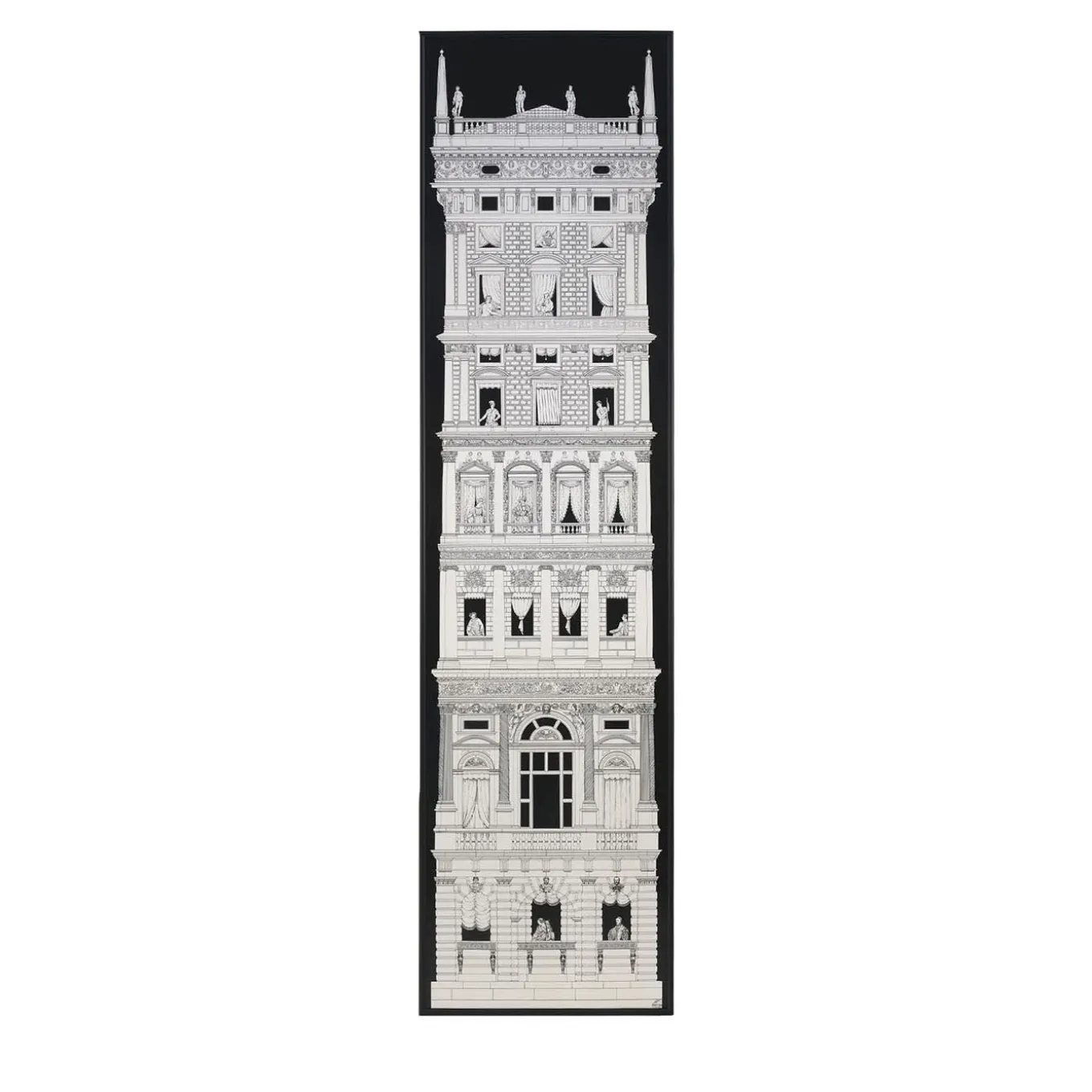 An imaginary palace, a paradigm of Renaissance architecture, is the undisputed star of this wooden panel – silkscreened and lacquered by hand – which can be hung on the wall. Any minor discrepancies between similar creations are the result of artisanal production techniques and attest to the uniqueness of each product.