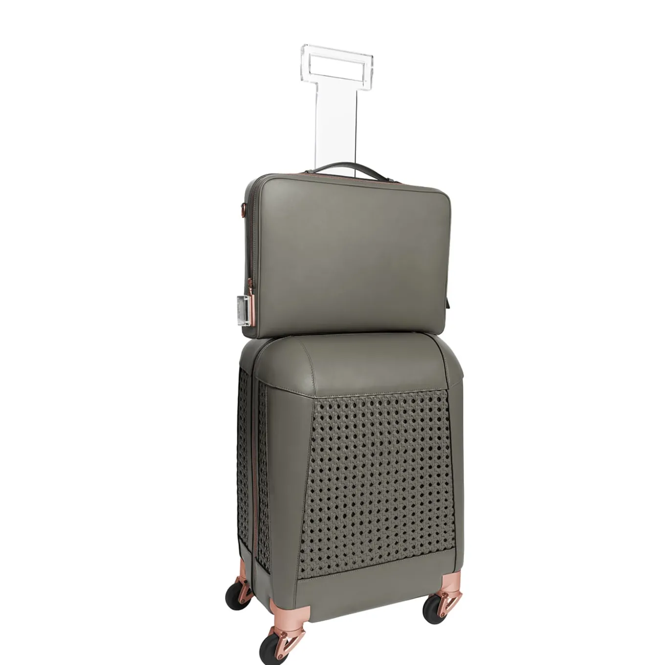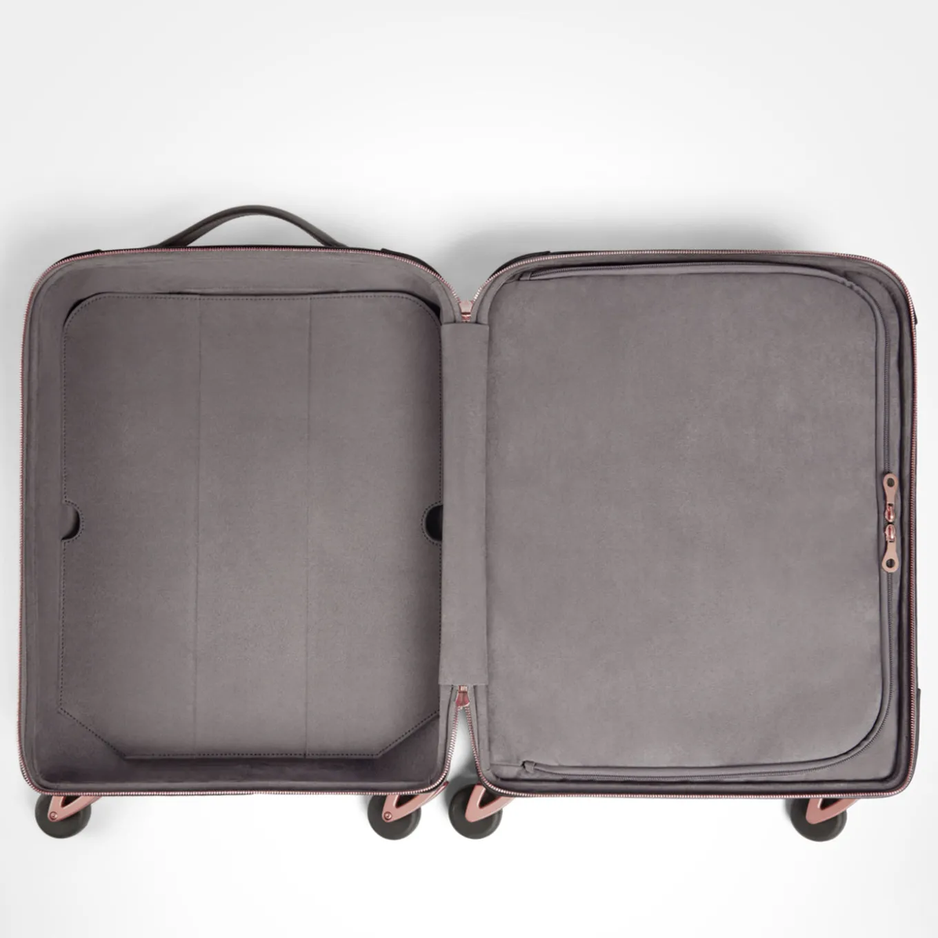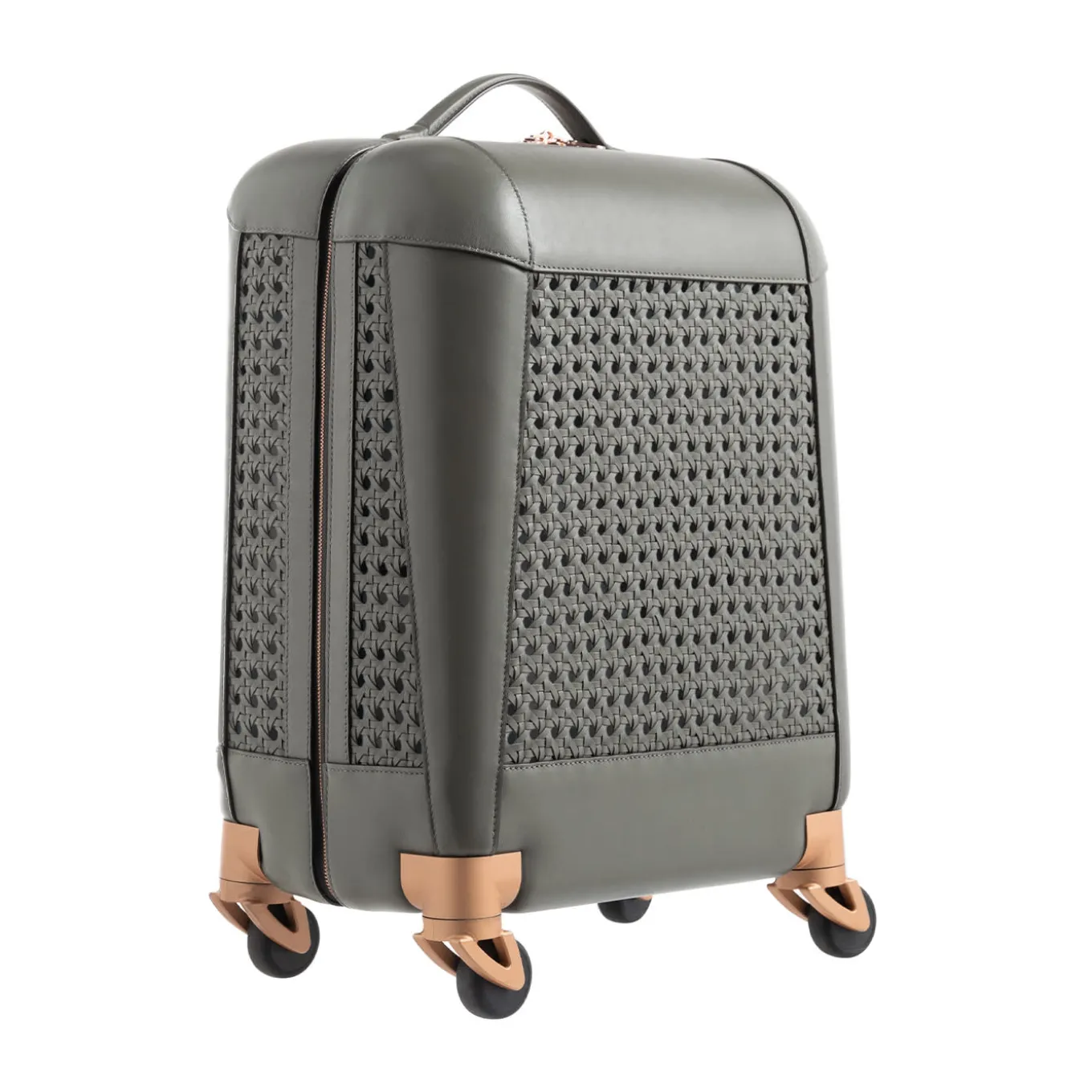 Hand-crafted by master artisans, this carry-on combines the finest calf-skin leather with technical, innovative components. The wheel casters are forged from aviation-grade aluminum for maximum stability and longevity. The “silent wheels” contain a sound-absorbing air chamber for minimal noise disruption. The transparent, buttonless handle is carved out of a solid block of Lucite. The interior is lined in durable, luxurious Alcantara and features two compartments for valuables and accessories.