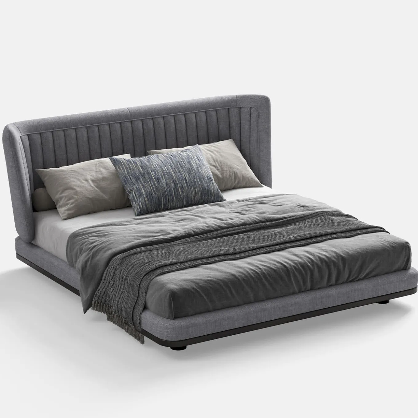 Elevate the bedroom with the bed featuring a spring mattress and a sleek black base. Upholstered in fabric, it offers a modern look that complements any decor. The bed combines stylish design with superior comfort, making it a perfect addition to your space. Enhance the space with the sophisticated bed, crafted for both luxury and durability. Decorative pillows and mattress are not included