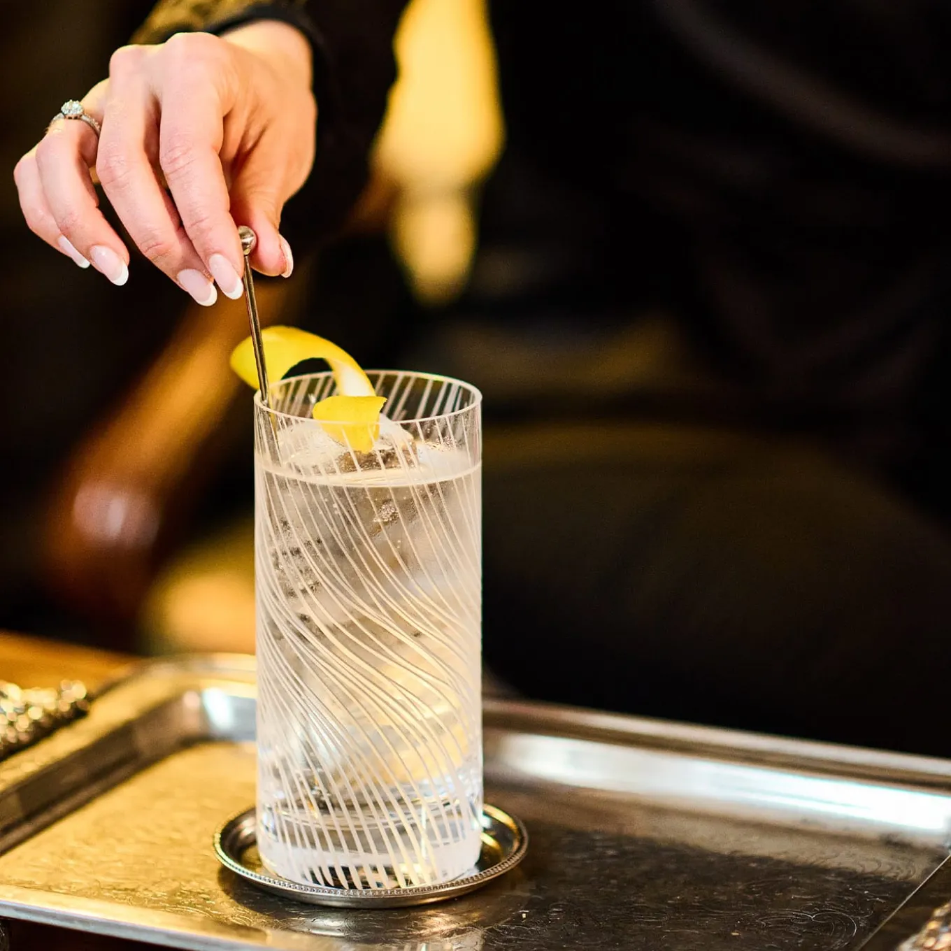 This set of six tall tumblers features an intricate frosted engraving pattern, characterized by delicate, overlapping hairline designs that create a sophisticated textured effect. The sleek cylindrical shape enhances its modern appeal, making these glasses suitable for a variety of beverages. Ideal for elevating everyday dining or entertaining guests, this collection combines form and function with an artistic touch. Perfectly sized for versatile use, the set offers a refined option for stylish drinkware.