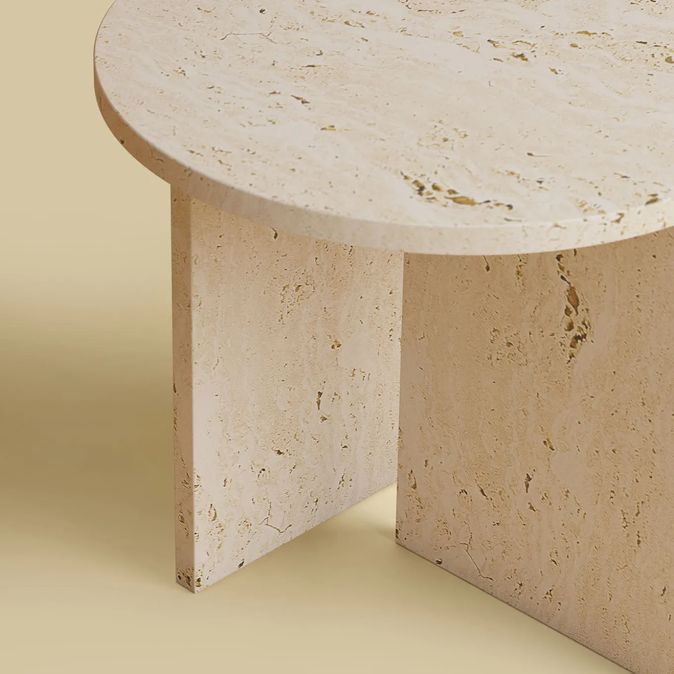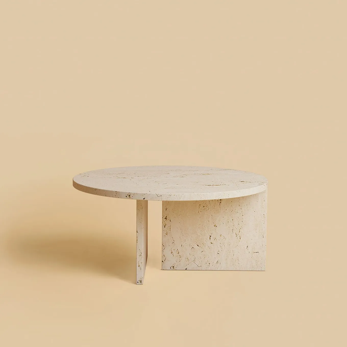 A gem in the Hashi Collection of sophisticated marble designs, this side table embodies a harmonious blend of contemporary technology and age-old craftsmanship. Deftly crafted from Roman travertine, it features a circular top and sleek legs, one of which seamlessly interlocks with the tabletop. Finished by hand to enhance its natural allure, other versions of this unique design can be found in the Artemest catalog.