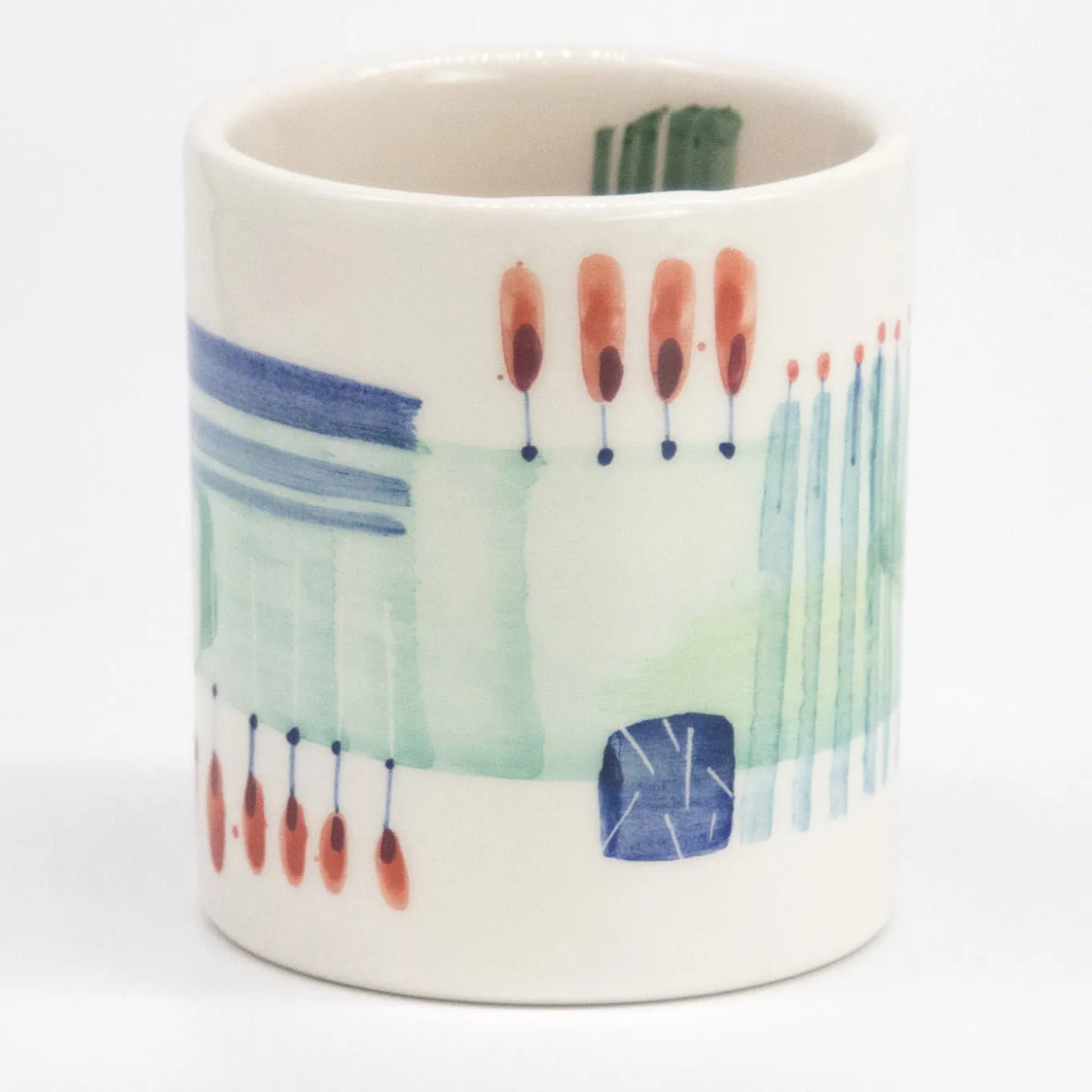 This set of four mugs is composition of designs that belong to the Swing, Bolgheri, Agave and Orizzonti collection. Each cup is an explosion of colors and drwas inspiration from nature and its lanscapes. Each much is handmade and handpainted.