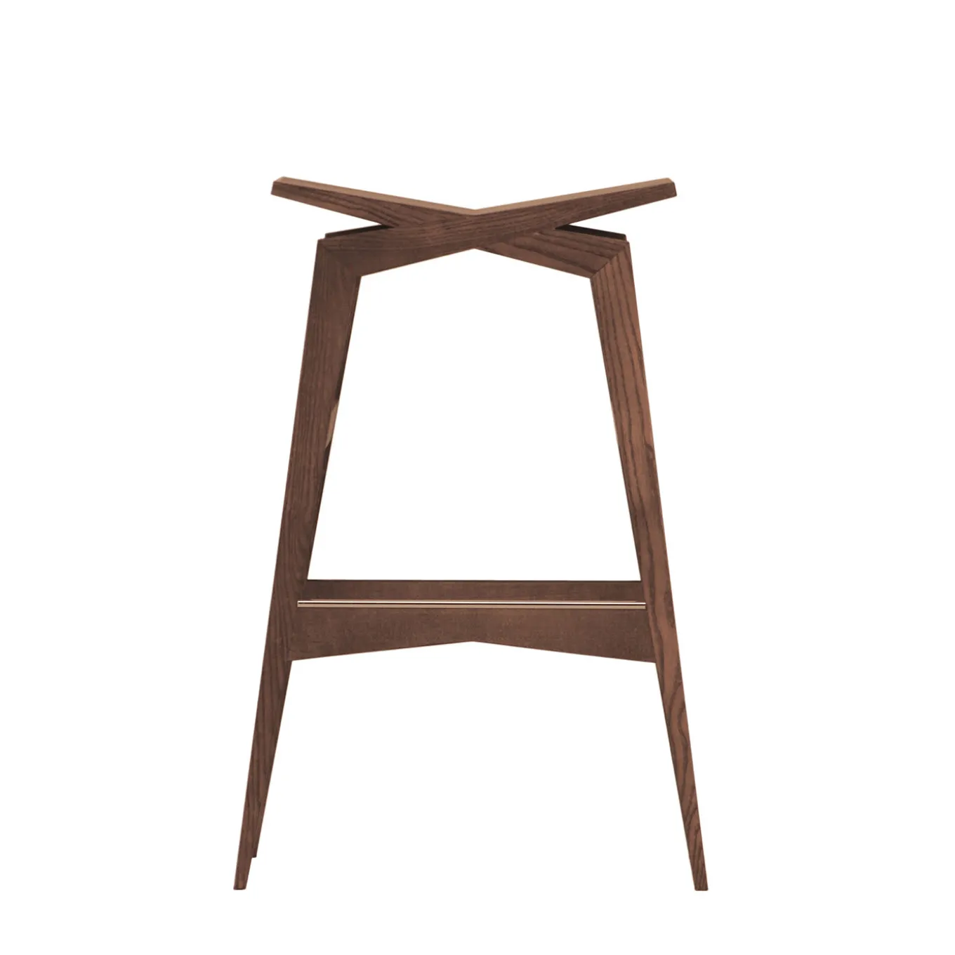 A celebration of pure geometric lines shaped out of top-quality ash marks the exclusive design of this stool. The tapered legs are joined to the base by is covered in metal footrests. Maximum comfort is ensured by the concave seat that counterbalances the straight and sharp elements composing this sophisticated item. The total weight is 10 kg. Designed by Itamar Harari.