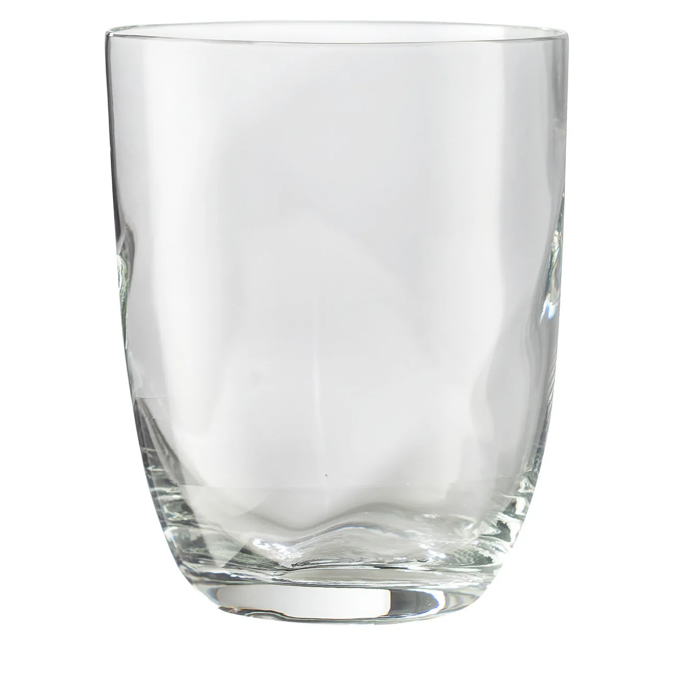 This set of two water glasses made of clear Murano glass exudes pure elegance in a simple shape. Capable of adding subtle sophistication on any table, the set is marked by an enchanting “lente” (lens) texture impressed onto the glass by blowing it when still hot directly into a mold with that specific weave. A set of six and other colors variants are also available, please ask the Concierge for details.