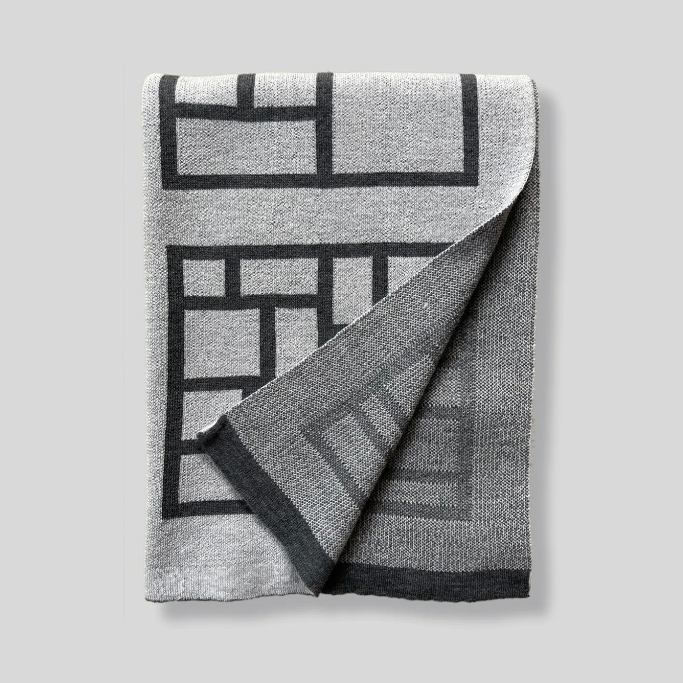 Inspired by the urbanistic projects of cities in ancient Rome, the pattern distinguishing this soft blanket is evocative of a glorious past through a truly original architectural perspective. Top-rate, extra-thin Merino wool is masterfully weaved into a stunning pique weft, resulting in a jacquard design of extra softness perfect to be a faithful companion for moments of authentic relaxation. A red version is also available, please check the Artemest catalog.
