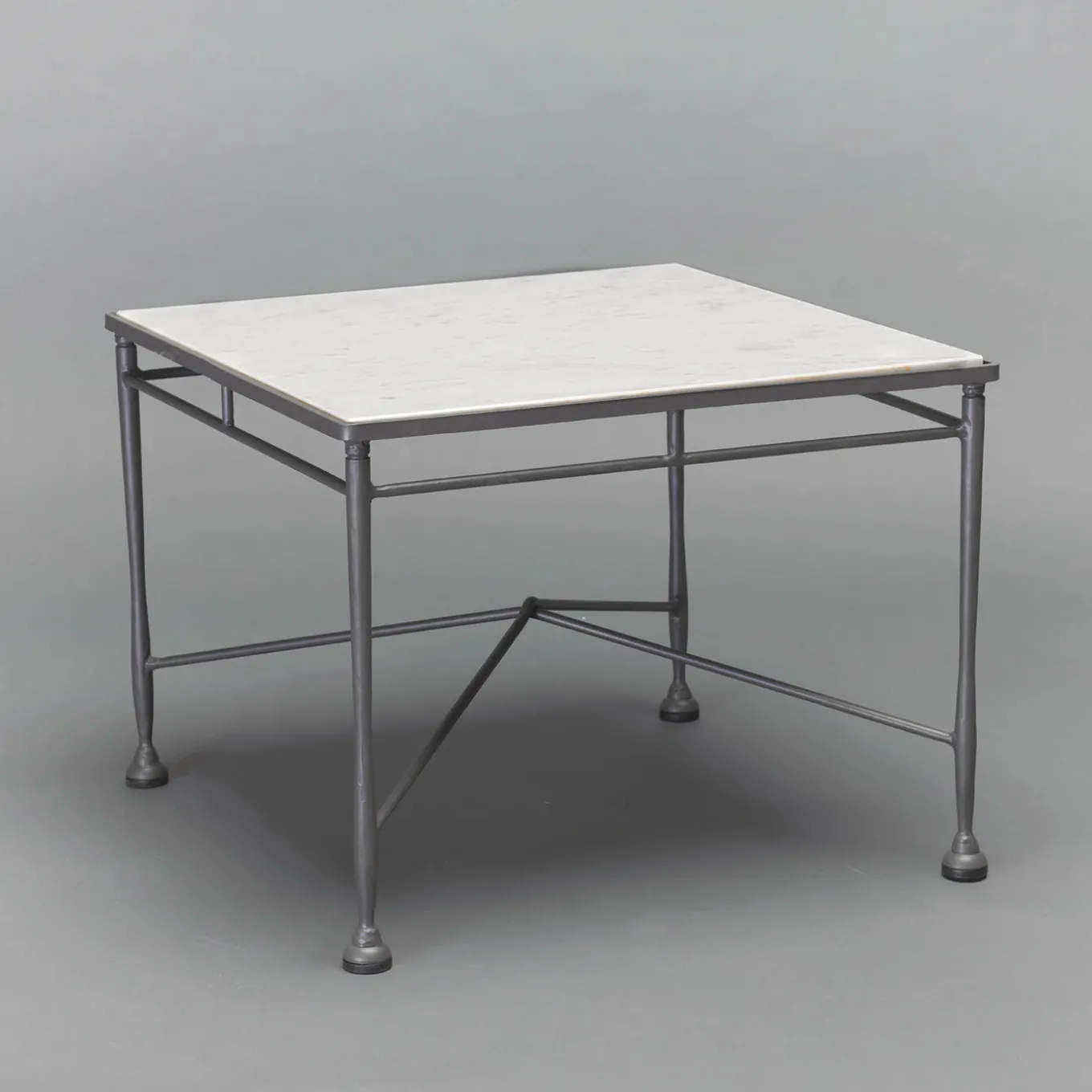Part of the Intreccio Collection, this outdoor coffee table is the ideal partner of the Intreccio Outdoor Chair. The square stainless steel shape features a sober and elegant base supporting the white Carrara marble top. A versatile and striking addition to a poolside, patio, or terrace, this piece is suitable for outdoor use, thanks to the zinc treatment and powdered varnish applied to the metal frame.