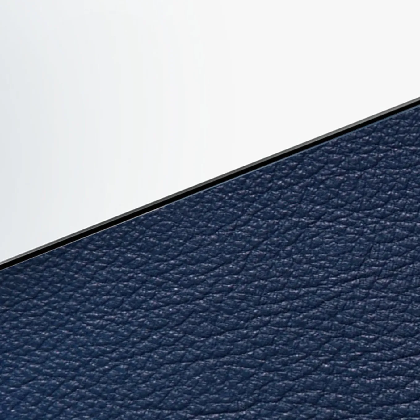 A door that leads to infinite others. The geometries that make up the mirrors of the “Itaca” collection invite to a journey without a destination, or rather where encounters, experiences and adventures are themselves the destination. A long gallery of doors that hypnotically follow each other. Mirrored glass parts adorned with Calacatta marble, brushed brass and genuine blue leather inserts.