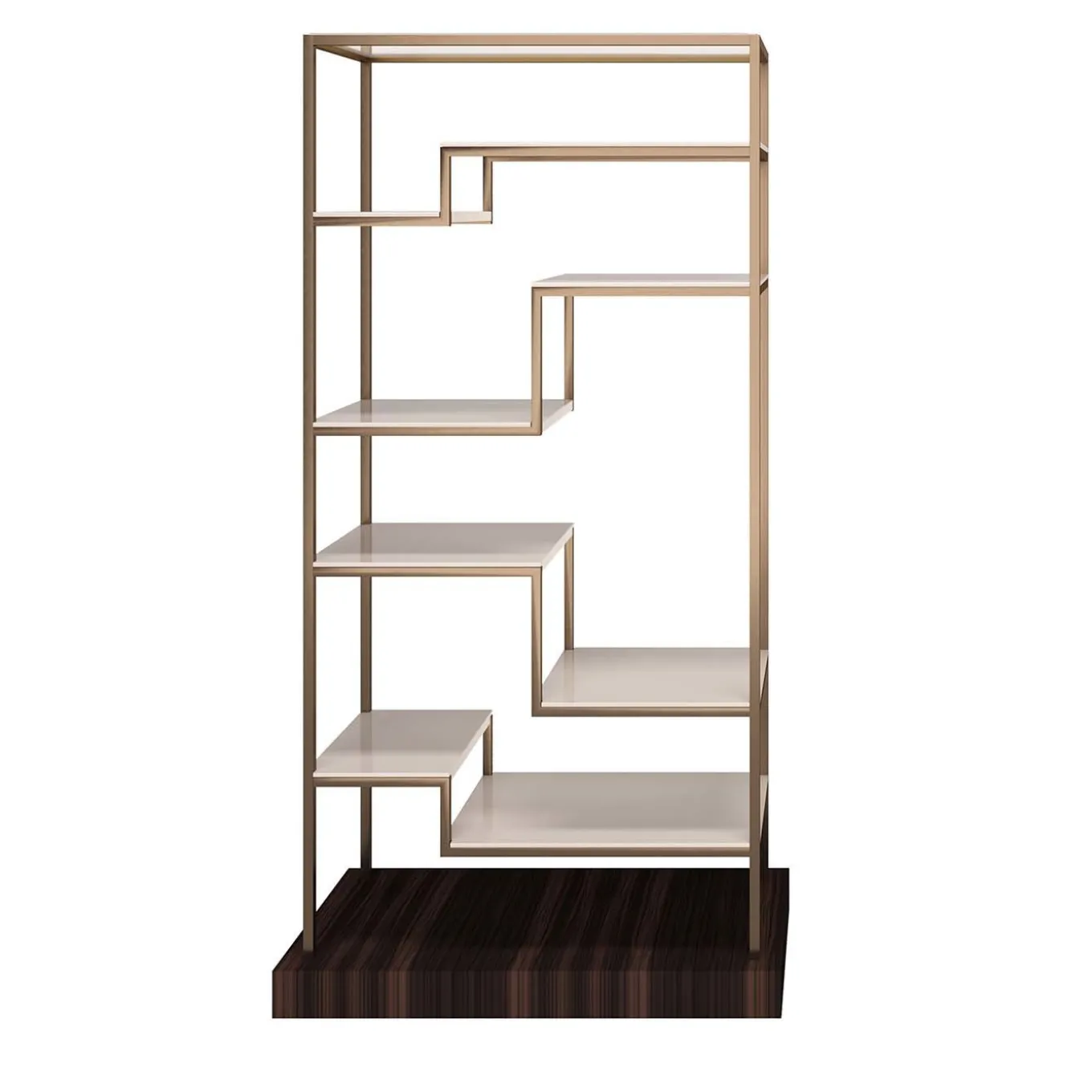 Of mid-century inspiration, the Jazz Bookshelf blends retro touches with a contemporary feel. On a dramatic ebony wood base with a matte finish, the bookshelf is made in bronze-tone metal with your choice of black or white shelves. Thanks to the stair-like shelves, the bookcase is perfect for displaying vases and photos as well as your favorite titles.