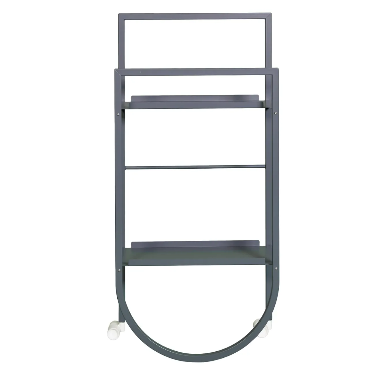 The JJ Gray is a multipurpose metal trolley featuring a composition of intersecting vertical and horizontal lines that define its clean, architectural structure. Designed for versatility, it integrates seamlessly into bathrooms, kitchens, living rooms, hallways, or bedrooms. Equipped with two spacious trays and smooth-rolling wheels, it provides practical storage and mobility while introducing a subtle, contemporary presence. Other color options are available in the Artemest catalog.