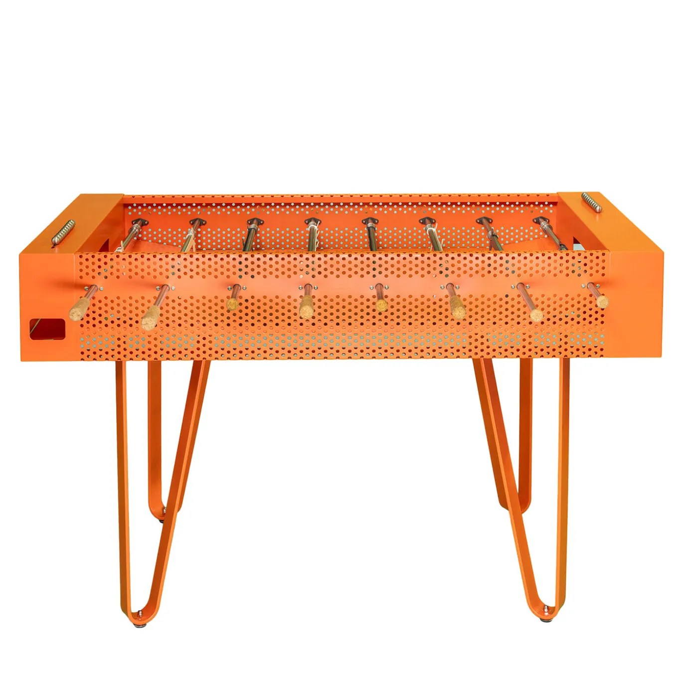 The Joie table football in melon features an elegant perforated sheet metal body paired with gray and fuchsia players. Designed with attention to detail, it includes cork grips and a cork ball for improved comfort and tactile response. Entirely crafted from metal with stainless steel components, it rests on sleek legs that ensure stability and a contemporary aesthetic. An outdoor version is also available, making it a refined addition to design-conscious gaming spaces. Other color options are available in the Artemest catalog. Please contact the Concierge for more details.
