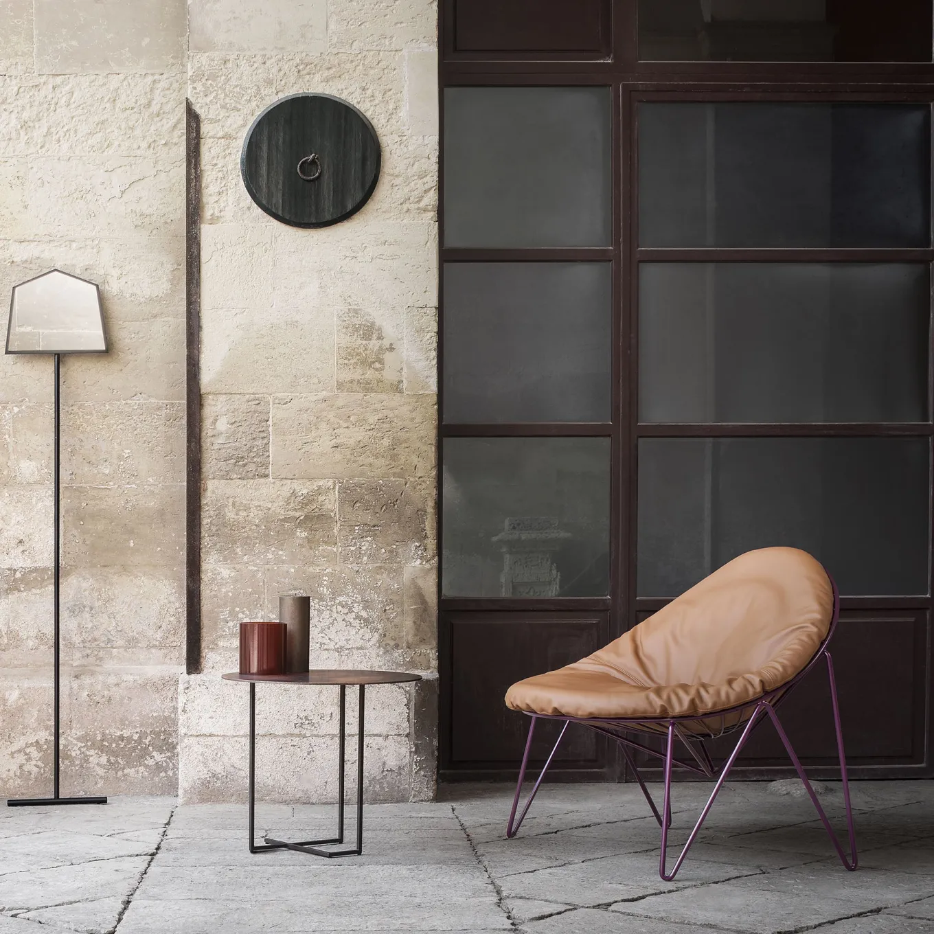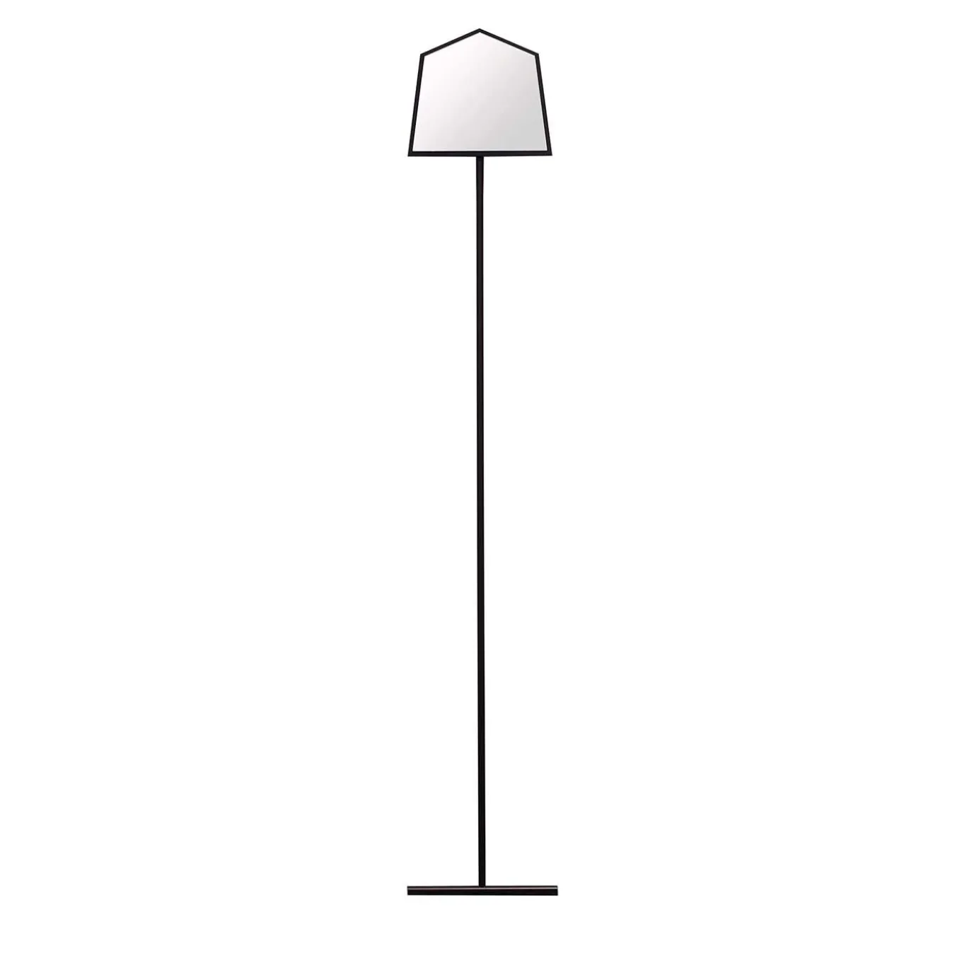 Elegant and minimalist, this superb mirror will add a unique contemporary accent to a modern entryway or bedroom. Best showcased simply against a wall, the tubular aluminum structure is composed of a long stem completed with a pentagon-shaped frame enclosing the mirror.
