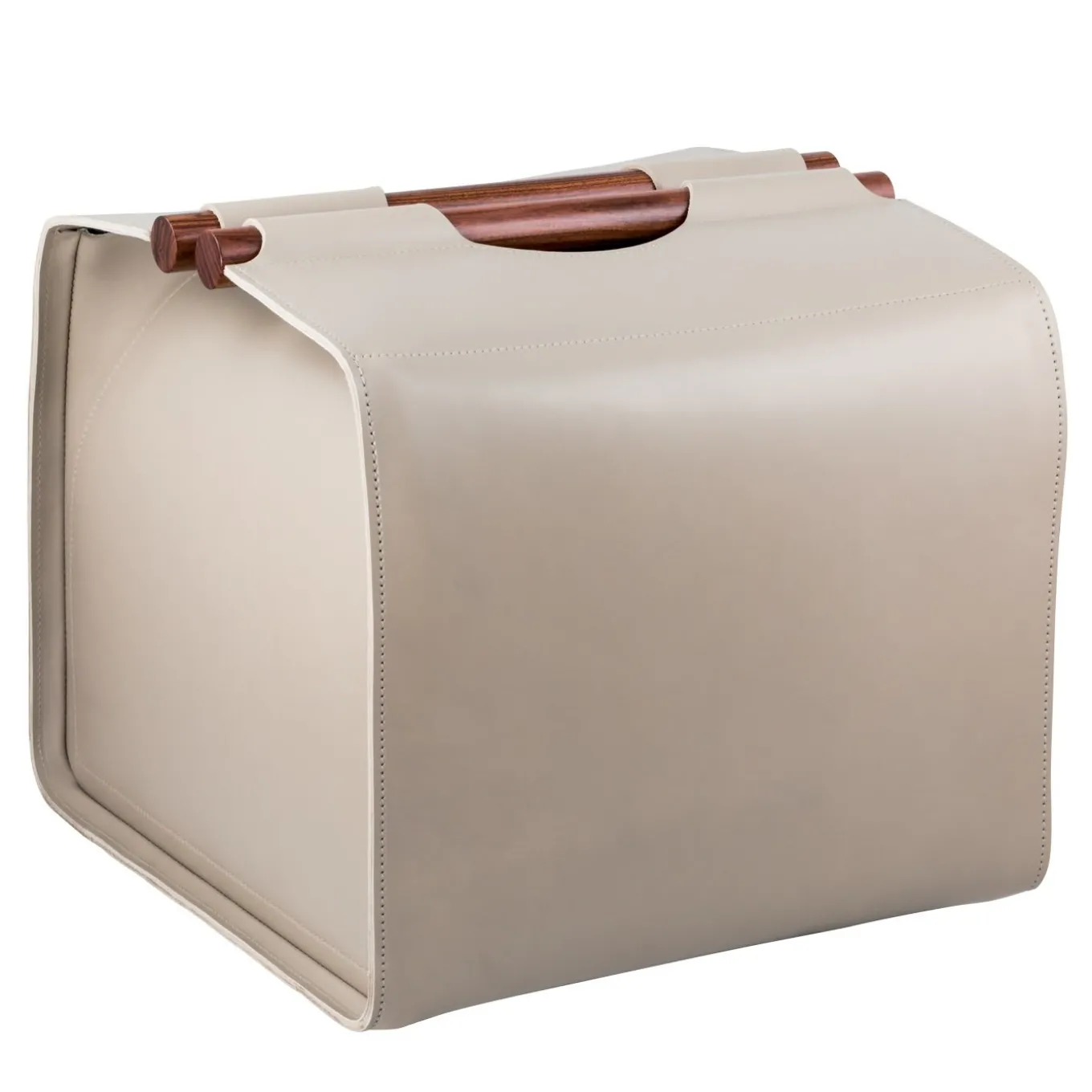 This exquisite piece of functional design is entirely made in saddle leather, dyed using vegetable pigments in a light gray color that complements its rigid shape. Timeless and elegant, this storage basket will be a precious addition to any home and can be used in different rooms of the house, depending on its content. Thanks to two solid rosewood handles, the items inside this basket can be secured and moved with ease. For alternative finishes, please contact the Concierge.