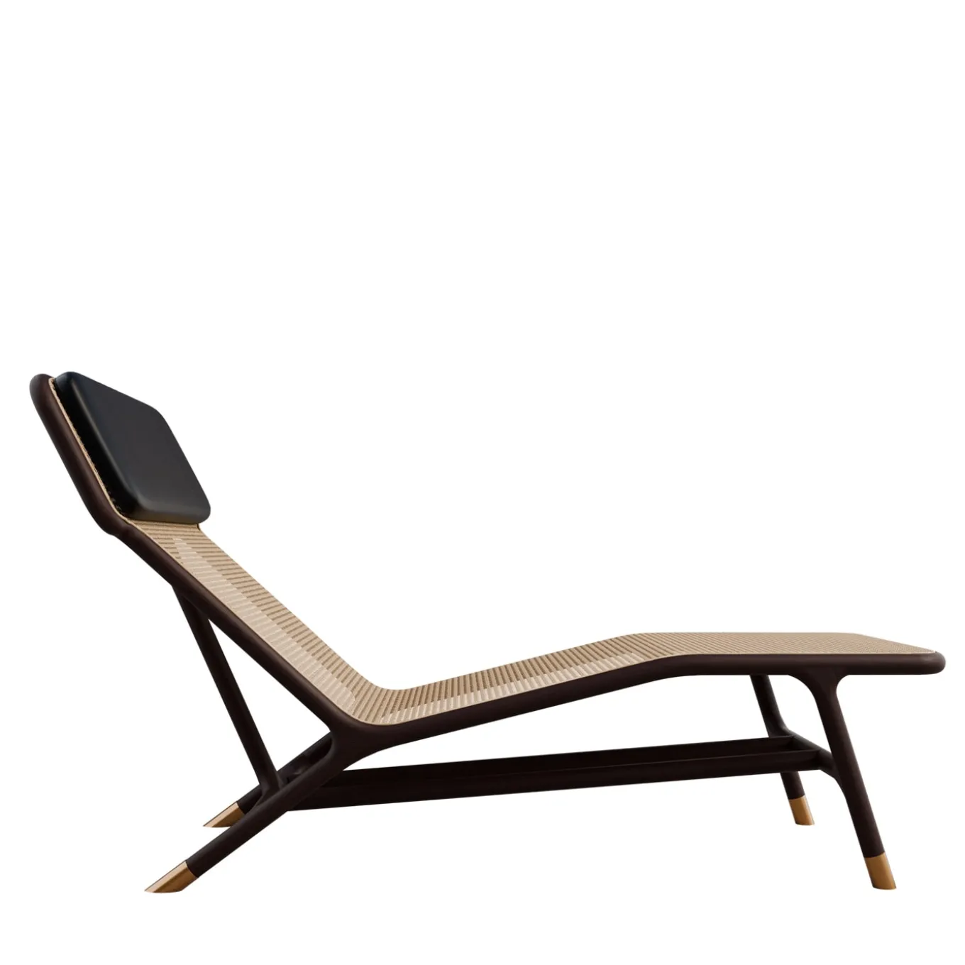 This timeless classic chaise longue will make a chic impact in any area of the home. Showcasing an elegant black finish ash wood structure with polished brass feet, and a remarkable woven Vienna seat. Comes accessorized with a padded matching cushion that attaches to the headrest for maximum comfort. The solidity of the structure is provided by two turned ash wood supports and no longer by one support but keeps the structure light and airy. Also available in an outdoor version. Contact the Concierge for additional information.