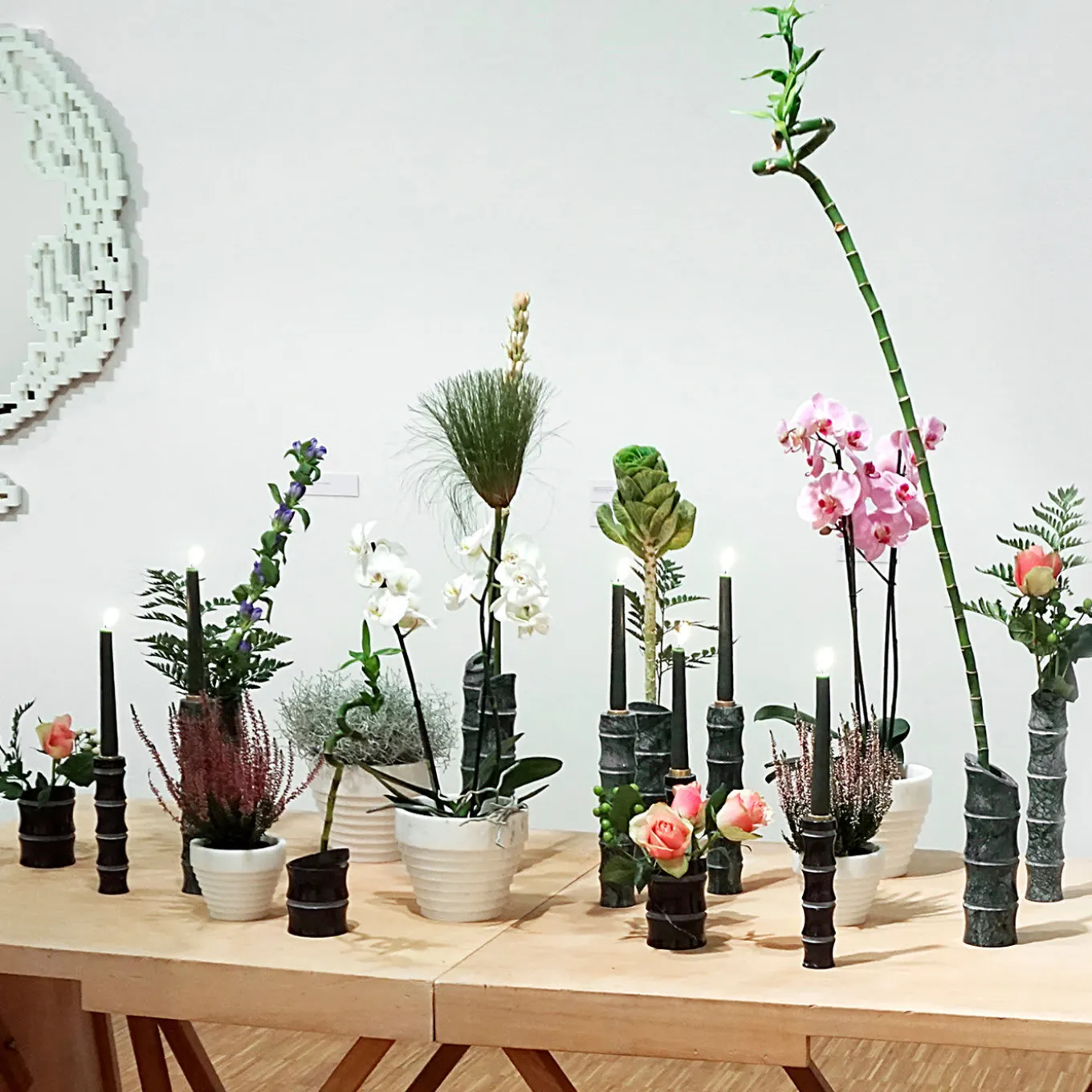 The charm of prized black Marquina marble meets the elegance and resilience of bamboo canes. The phytomoprhic design of this candleholder is harmonious and seductive, conceived by Michele Chiossi for the Kadomatsu Collection, which also includes vases and an exclusive sake-serving set. The flickering light of candles will create a charming ambiance in the surroundings while enhancing the natural traits of the precious stone. Please note that marbles and stones are natural materials and they can differ also if coming from the same quarry or the same block. The product shown may differ from purchased items. Every piece is unique.