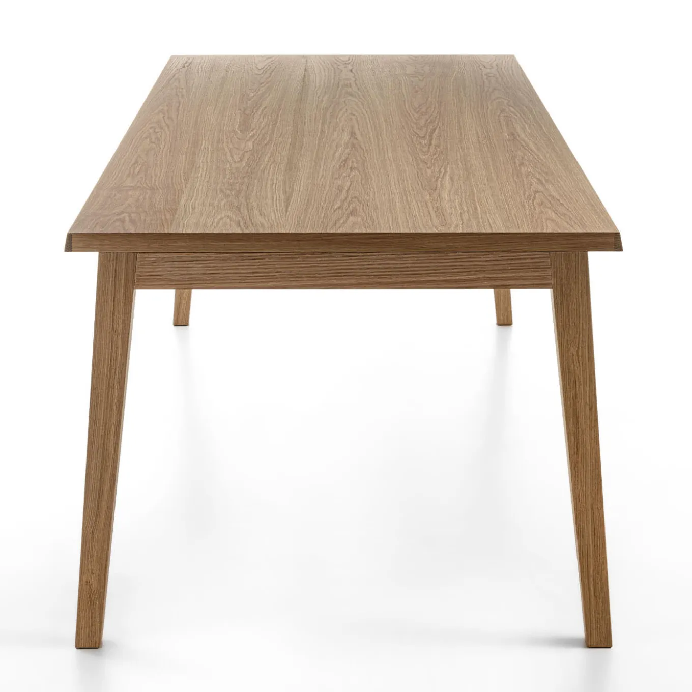 The epitome of pure minimalism, this oak dining table makes for the ideal solution for gathering family and friends around to share a meal together while surprising them with the uniqueness of its grain. A system allowing extension can be inserted in the design upon request. Please contact the Concierge for available versions in different wood types and variants’ pricing.