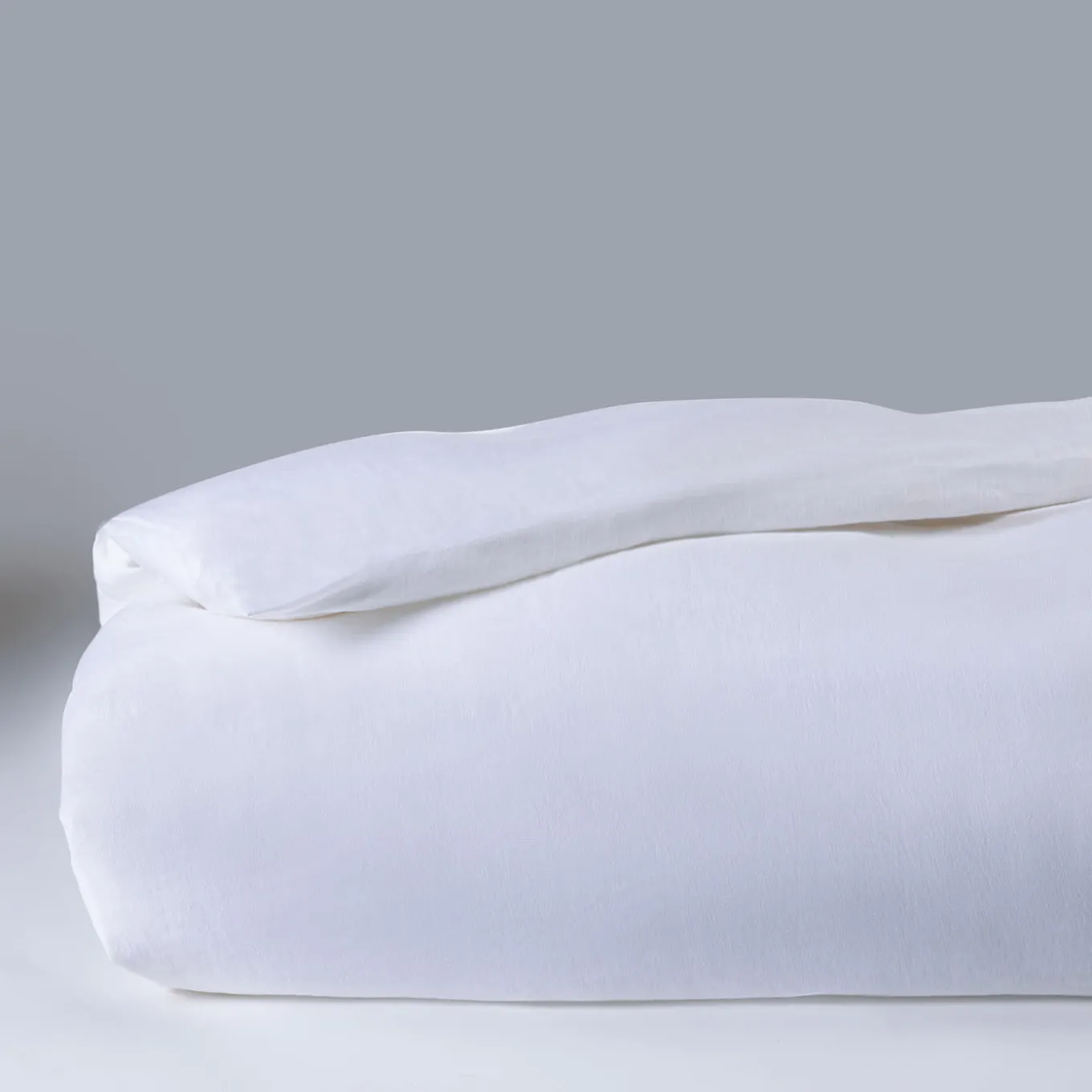 This bright and fresh double bed duvet cover makes for a timelessly elegant addition to any linen collection. Farmed with no use of fertilizers, pesticides, or other chemical additives, its 100% natural yarns simultaneously guarantee durability and sustainability. Please inquire with the Concierge for detailed care instructions and color variants.
