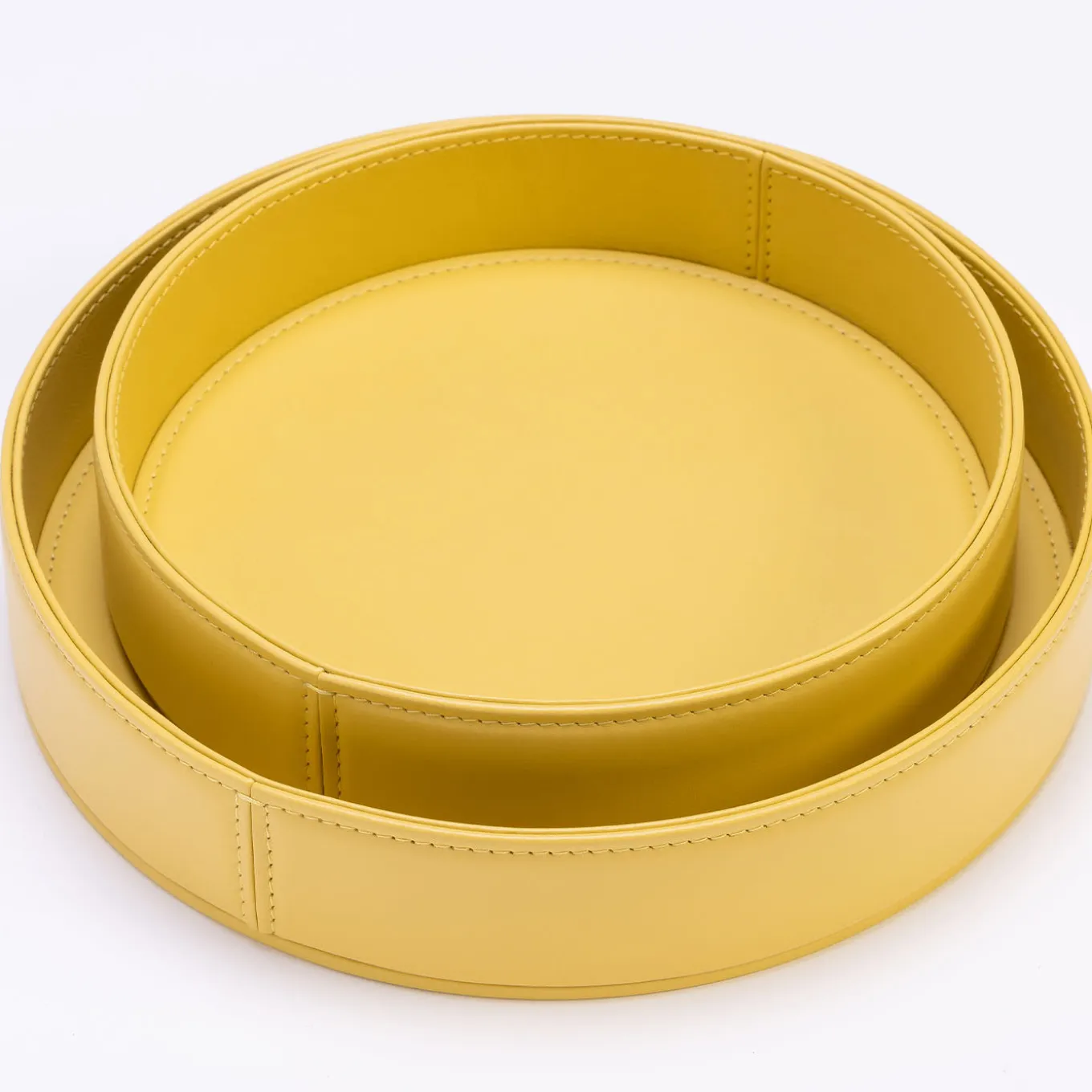 The versatile Kandinsky leather vide poches, expertly crafted in Foglizzo leather, embody an elegant sophistication. Placed on either an entryway console or a bedroom dresser, they keep loose change, jewelry, and small items organized for their next use. Available in three different sizes and circular-shaped, they are stackable, allowing for the creation of unique and captivating compositions. Please contact the Concierge for further information.