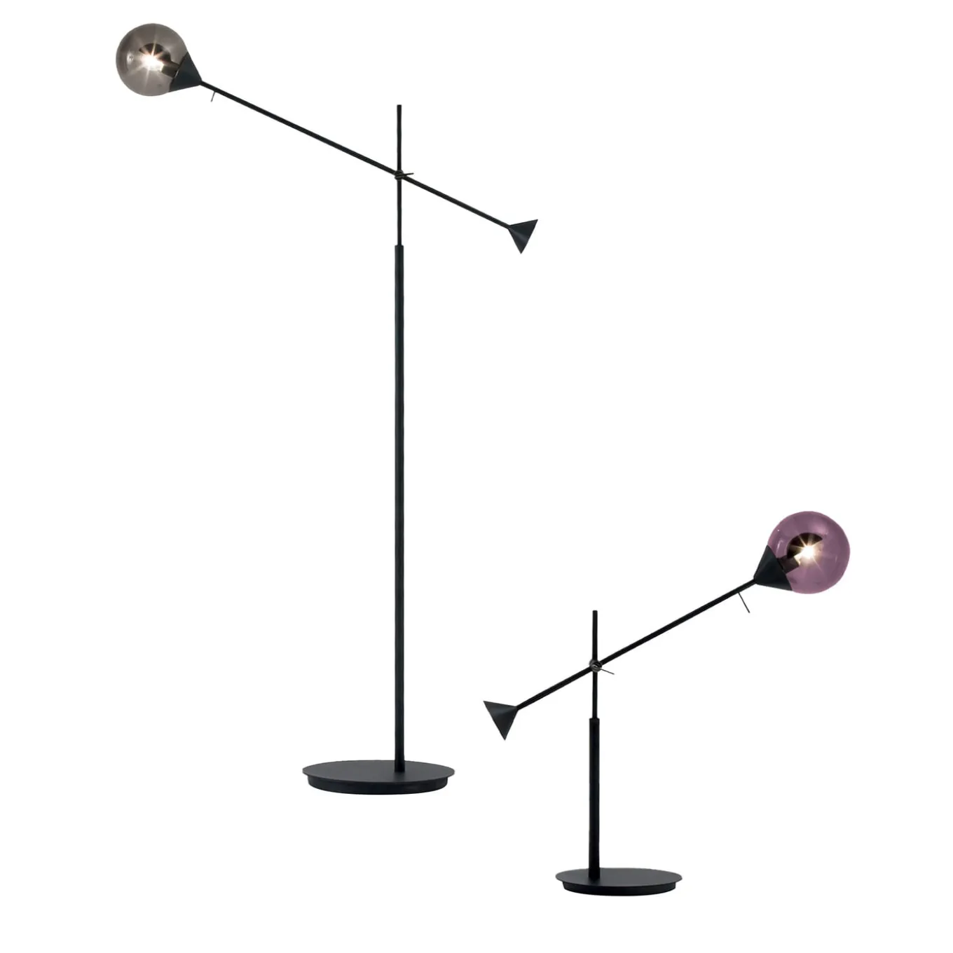 The Kendama Table Lamp belongs to an exclusive series of lighting fixtures available in different designs and colors. A timeless accent piece for a contemporary interior, it is made of burnished metal and features a mouth-blown Murano glass shade available in petrol blue, bronze, amethyst, gray, and steel. It supports an E26 LED bulb. Please consult the Artemest catalog for more information and other available designs.