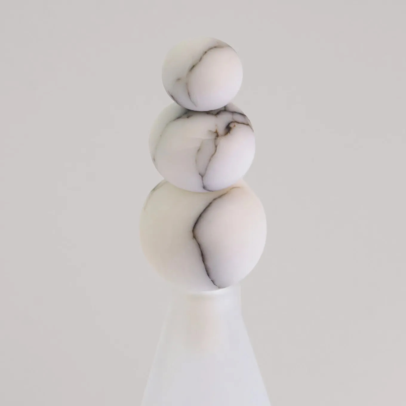 The KITE V3 Bottle exudes timeless elegance with its harmonious blend of materials and refined design. This limited-edition piece is crafted from sanded white glass and white alabaster, creating a delicate interplay of translucency and texture. Topped with a sculptural gem-like stopper resting on a satin glass support, the bottle embodies sophistication and precision. Each piece is uniquely marked with a progressively numbered metal plate, ensuring its authenticity and collectible value.