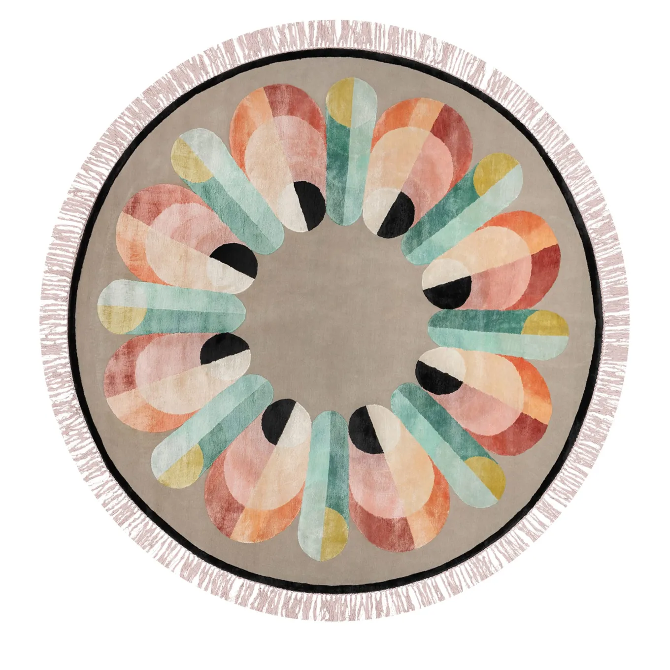 Part of the La Limited Edition Collection, this stupefying rug is an homage to Futurist Art offered in a vibrant palette of conflicting, bright hues. Nepalese master weavers crafted it from 50% Himalayan wool and 50% silk, recreating a shape that recalls a mechanical gear, an element dear to Futurist artists. An authentic artwork to enrich floors in modern homes, it can be widely customized and finished with a stain-resistant treatment, please ask the Concierge for options and pricing.