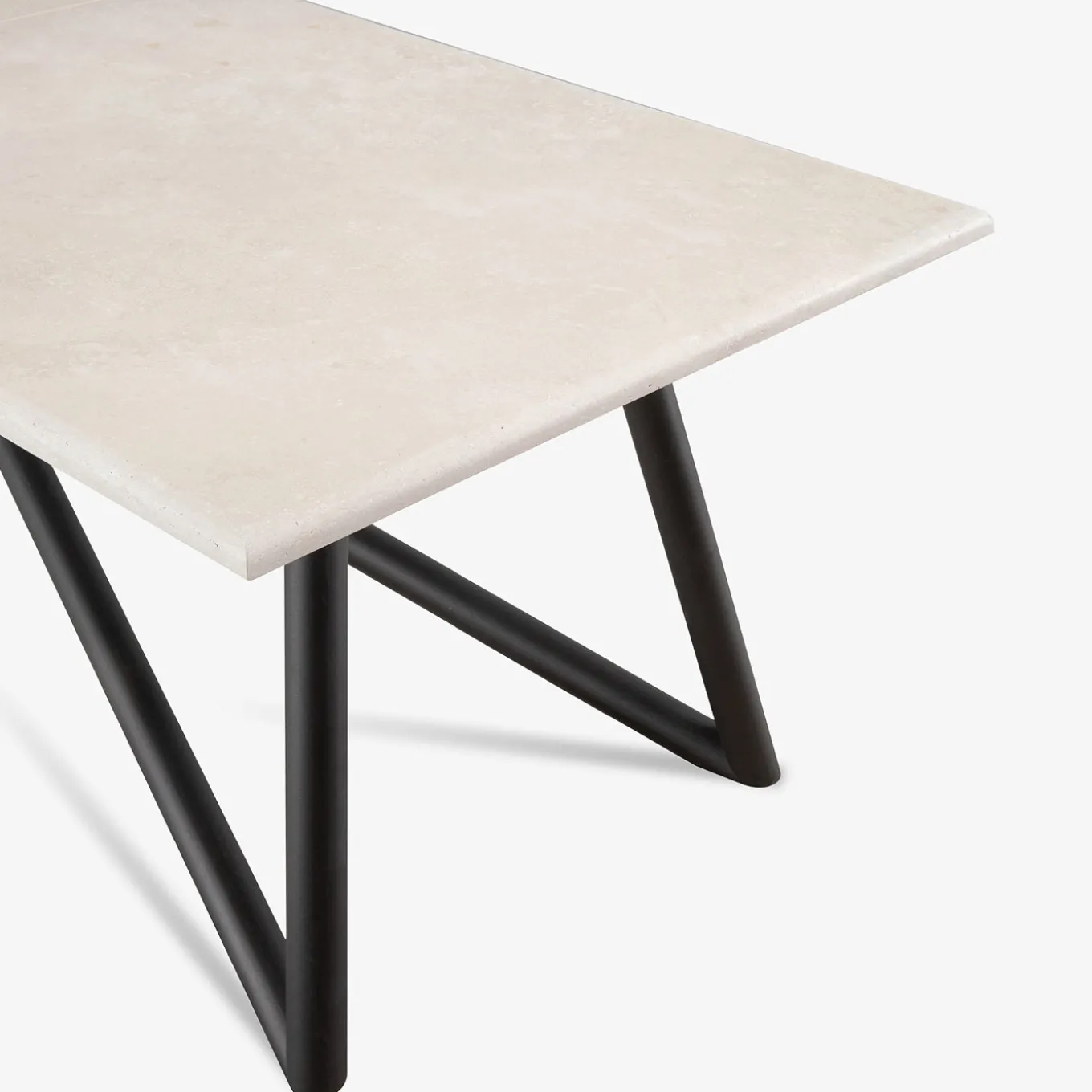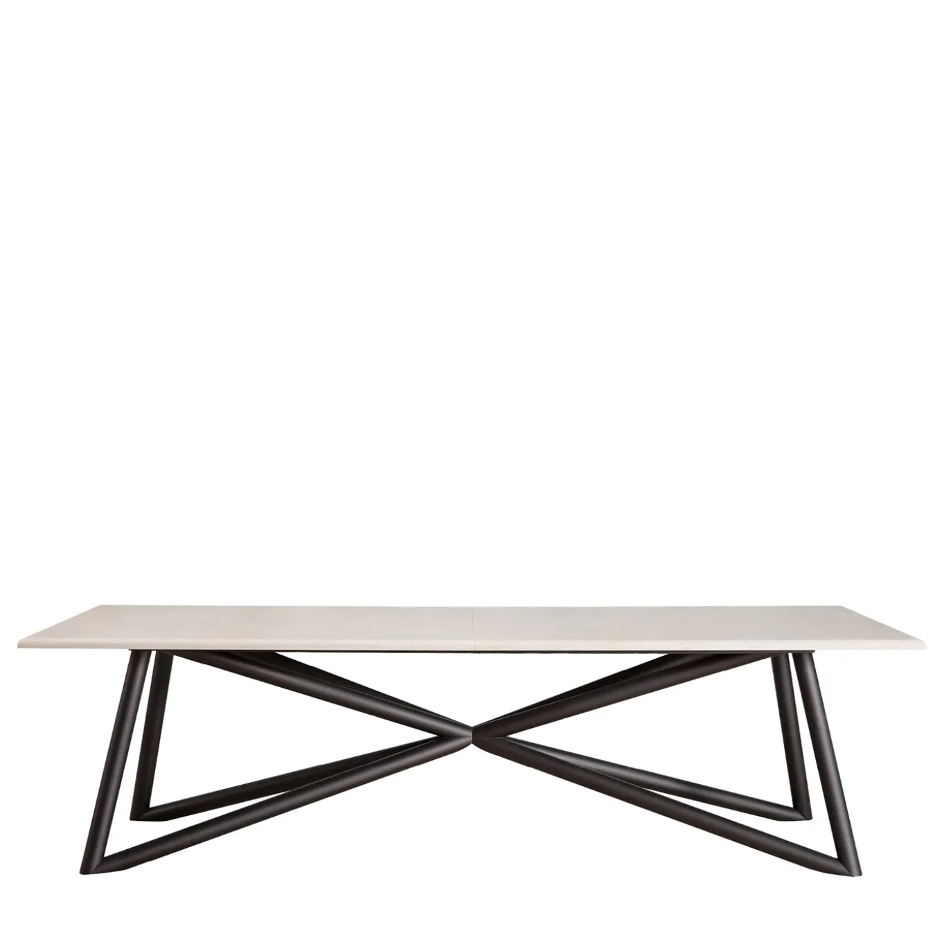 The Larte Table features a rectangular top composed of two honed travertine elements, treated to resist stains and weather. Its sculptural base, made from intertwined galvanized steel tubes, is finished in dark brown with thermosetting powders for outdoor durability. With rounded edges and precision craftsmanship achieved through advanced CNC technology, the Larte Table brings timeless stone and contemporary structure into perfect balance.
