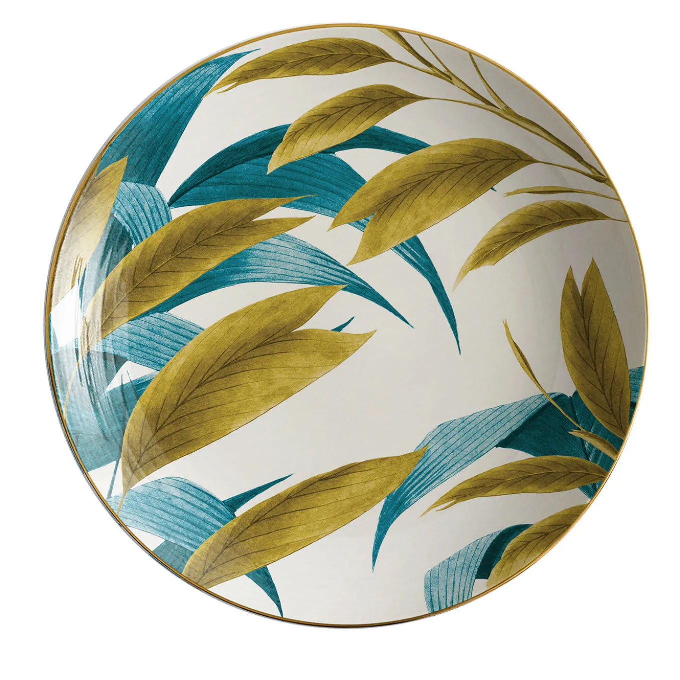 This gorgeous plate is part of the Las Palmas series of porcelain plates from Vito Nesta’s Grand Tour Collection inspired by the artist’s travels around the world. Handcrafted of porcelain, the piece showcases an exquisite foliage painting that evokes the Amazonia rainforest landscape near the city of Palmas in Brazil.