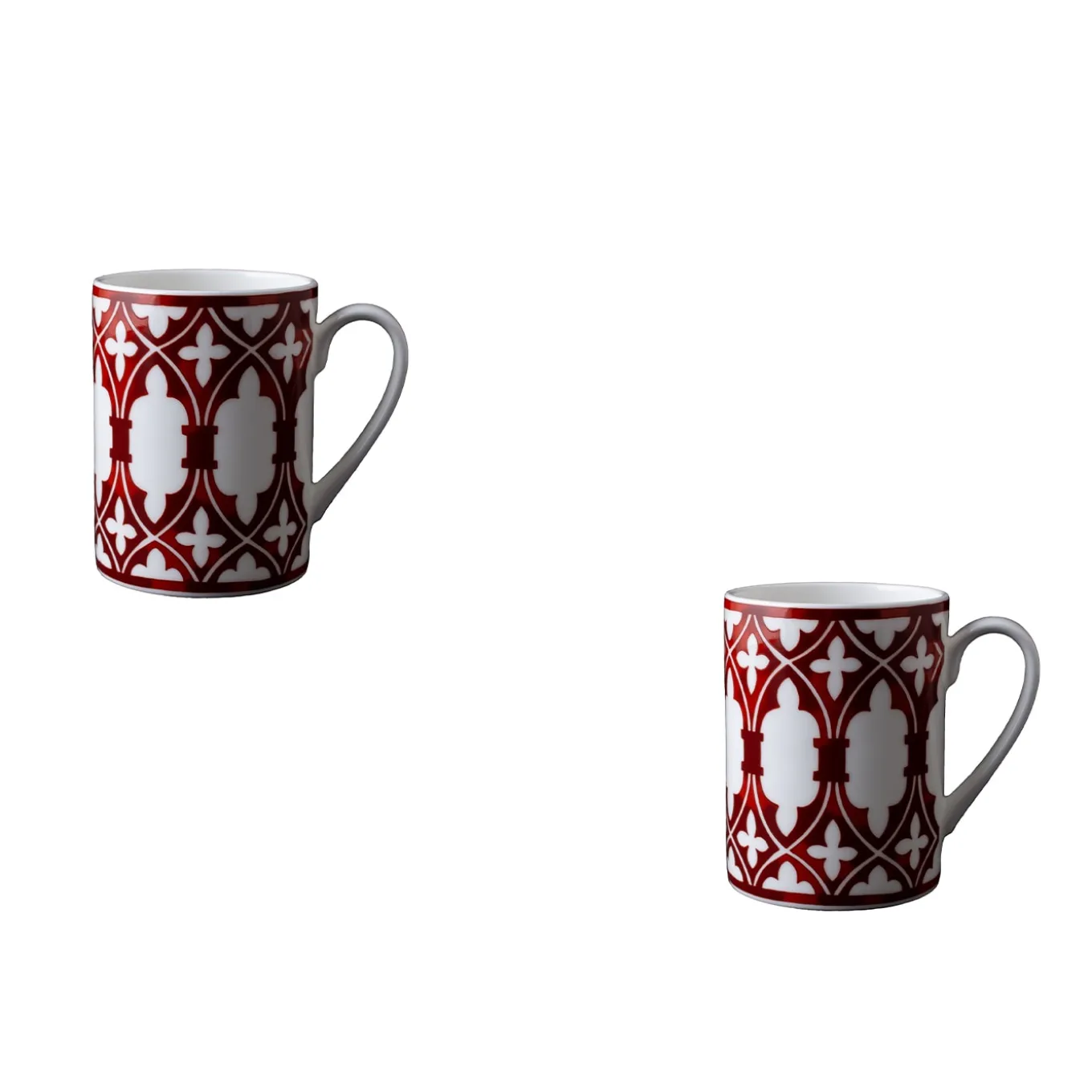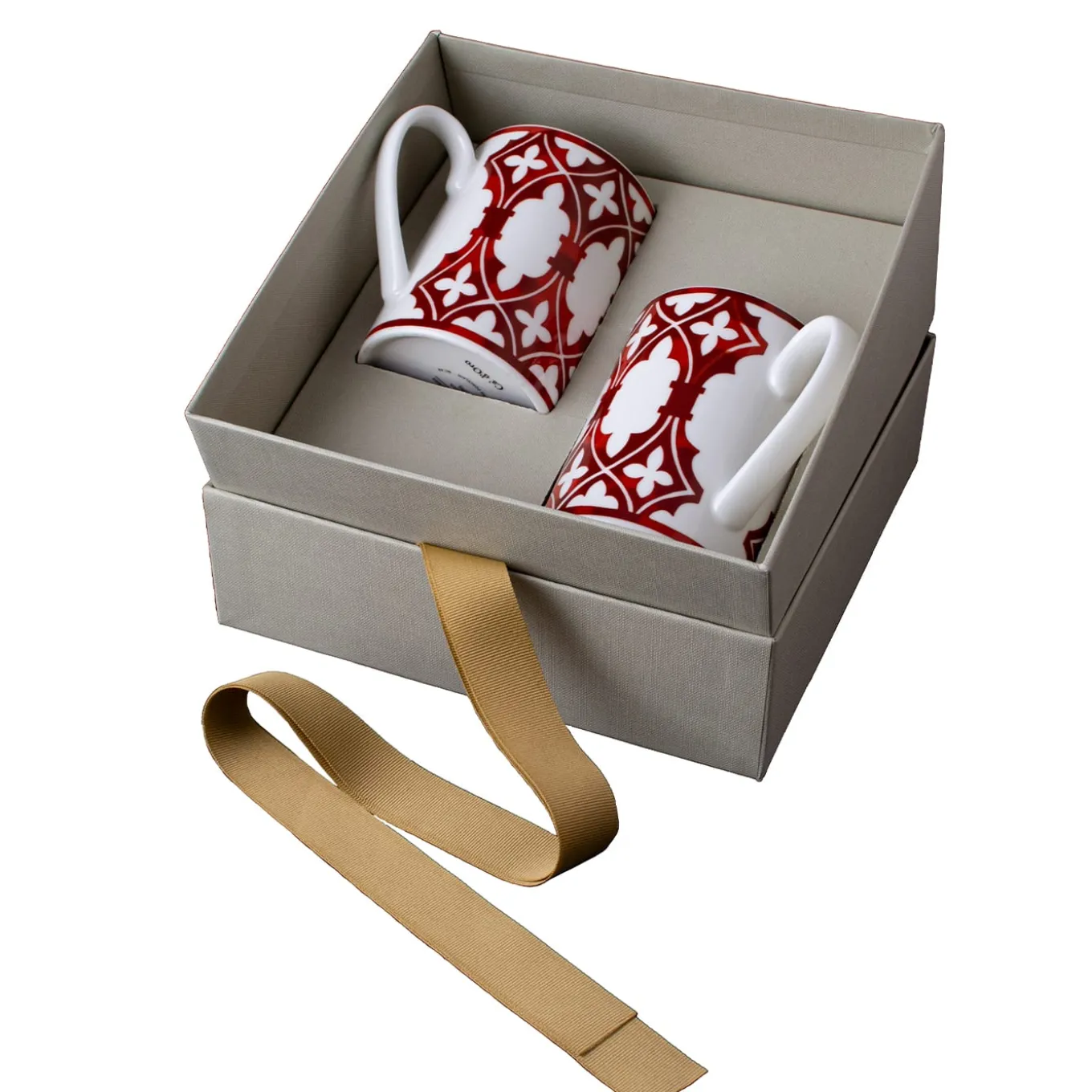Serving coffee, milk, or hot chocolate will become an unexpectedly enchanting routine with the exquisite set of two mugs (450cc capacity each) from the refined Le Loze dei Bei Palassi Collection of fine bone china objects. Beautifully handmade and decorated by hand, it features a splendid burgundy motif that draws inspiration from the singular lines of loggias from 17th-century Venetian palaces. This set is completed with a gift box.