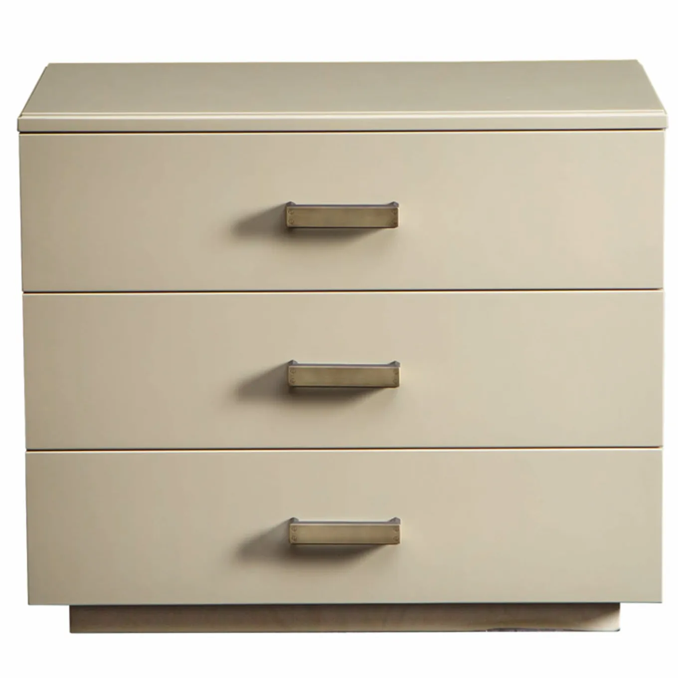 The elegant Loft 3-Drawer Side Table makes a stylish addition to your bedroom furnishings. With a structure and top crafted from plywood, it is finished in a brushed gloss lacquer. The fully lined drawers and the brass base and handles in a burnished brass finish complete this sophisticated accessory.