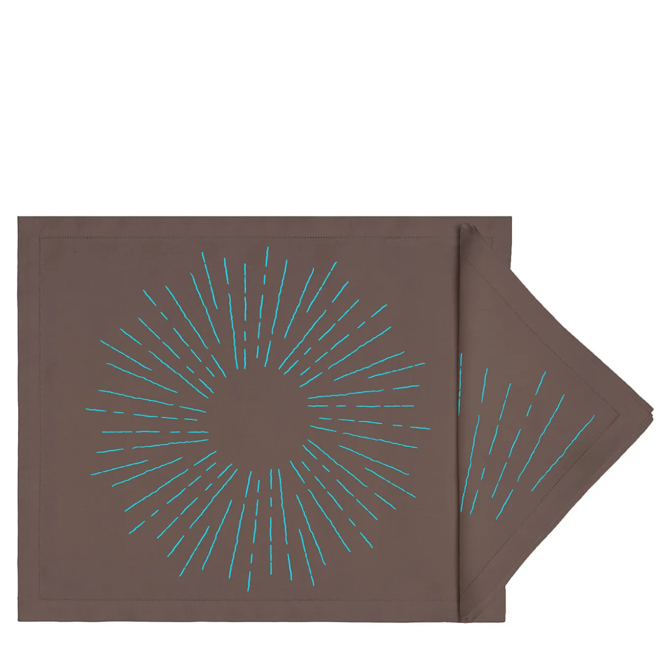 Elevate the dining experience with Luce, a radiant collection that brings warmth, elegance, and a touch of magic to the table. Crafted from 100% Italian linen, these placemats and napkins are expertly woven and embroidered in Tuscany, showcasing a sophisticated interplay of noce and turquoise threads. Inspired by the beauty of light, Luce celebrates togetherness and transforms every gathering into a luminous occasion. Made in Italy with artisanal mastery.