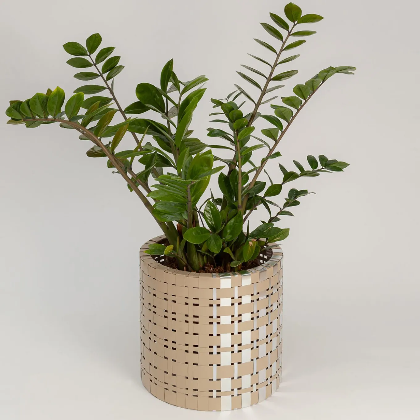 A luminous weft made of SPLOT® – high-grade aluminum foil – where champagne and silver tones interact distinguishes this exclusive cachepot. A clever solution for elevating any plant welcomed within, it comes in a wide variety of different colors and versions to explore in the Artemest catalog or by contacting the Concierge.