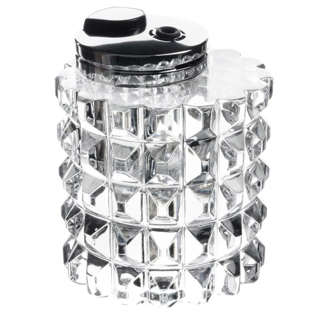Part of the Luxe’ collection, this lighter is a charming addition to a classic or contemporary home. Elegant and timeless, its design has a distinctive square texture on its surface that creates a lively and elegant decoration reflecting the surrounding light in unique ways. This crystal sculptural shell covers the metal body of the lighter and will be a superb object of functional decor to display anywhere in the house. It can be paired with the Luxe’ Oval Ashtray for a complete set.