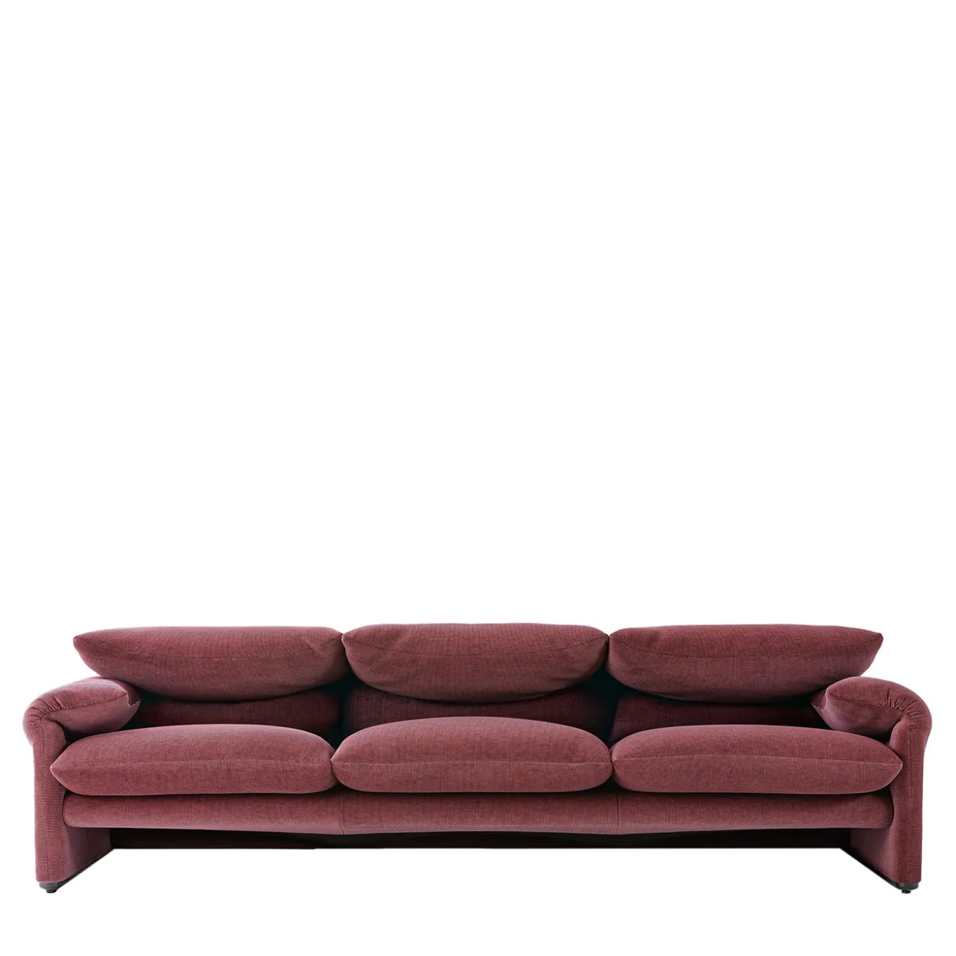 Maralunga – Divano 3 posti (Upholstery Otterlo Stripes, Colore: Rosa Cod. 13O063). An international best-seller with warm, inviting shapes, where the back extends upwards to form a head-rest. The smooth, padded style, meantime, amplifies the sofa’s comfort quotient, affording myriad interpretations. Much imitated, Maralunga introduced the idea of an adjustable-height head-rest, achieved by means of a bicycle chain embedded in the foam cushions. This avant-garde mechanism, patented by Cassina, makes the back cushion unfold and move upwards, to form a head-rest. In 2014, to celebrate Maralunga’s fortieth anniversary, Cassina undertook a further restyling, making the fabric upholstery removable for cleaning, while adding details such as the edge-stitching that confers a more contemporary look to a design classic. The Maralunga family includes an armchair, a foot-rest and two- or three-seater sofas in several widths.
