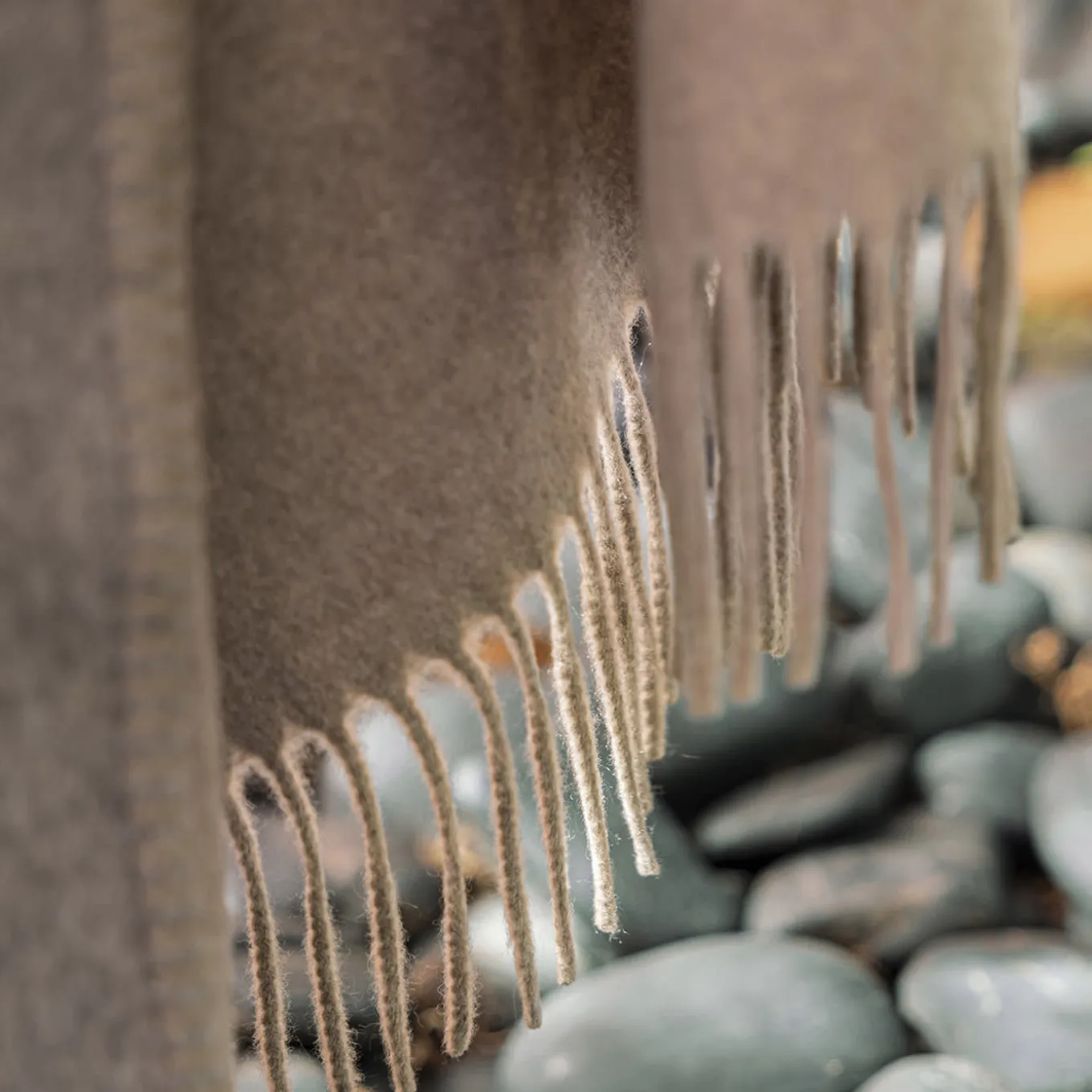 The preciousness of fine cashmere and the elegance of a plain, double-sided design make this small blanket a precious addition to any home, ideal to temper a colorful throw set or to complement neutral-hued sofas. Soft and lightweight, it is enriched with fringes and stitching details revealing its fresh character and sartorial quality. A solution to be unfurled for pampering moments of relaxation.