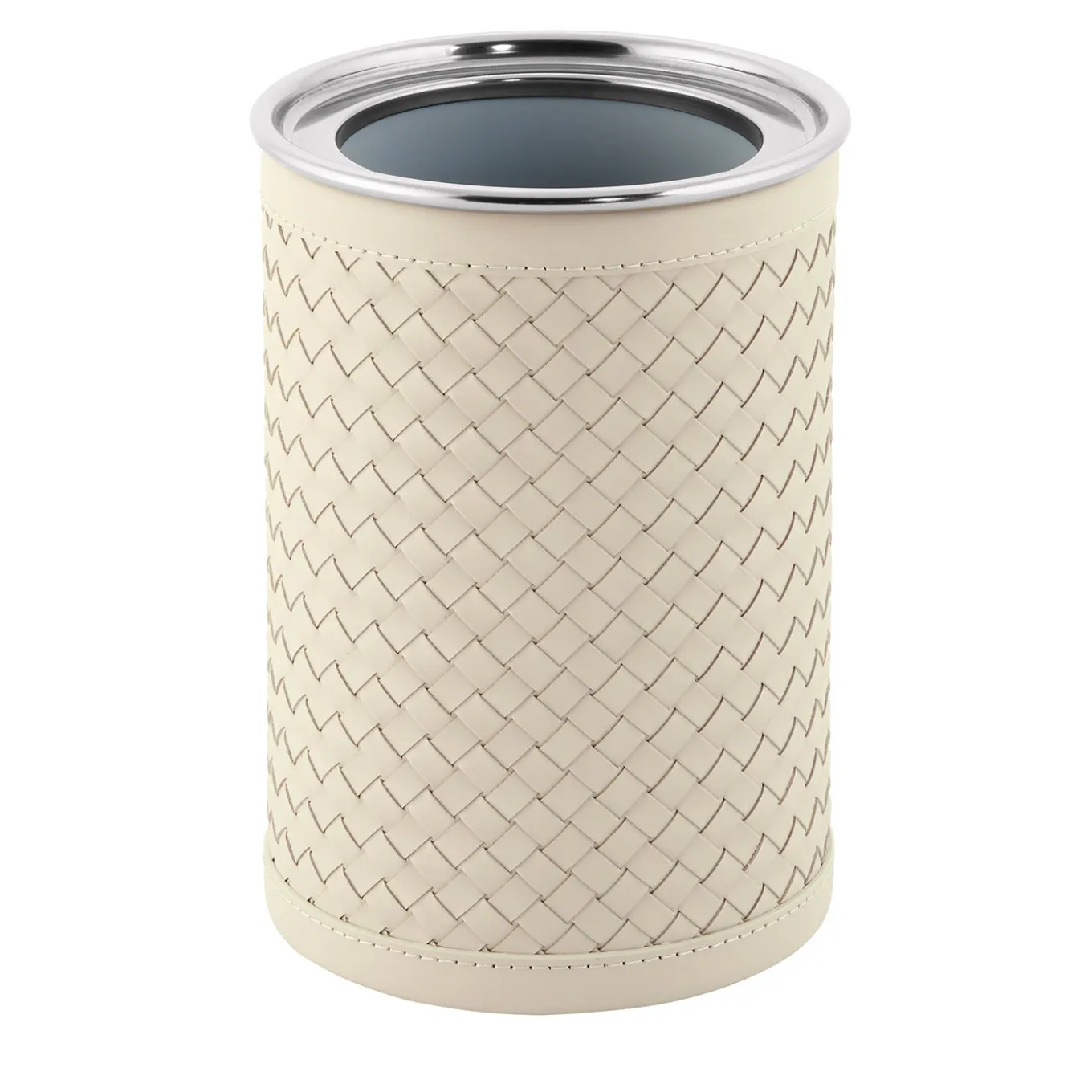 Designed to maintain the optimal temperature of wine or champagne, the Menfi bottle cooler features a stainless steel interior enhanced by a handwoven ivory leather exterior. Its subtle textured weave enhances light reflection, while its neutral tone complements various settings. With a height of 22 cm, this cooler can be personalized in any smooth leather color from the Riviere palette, and pairs elegantly with other handwoven serveware items for a cohesive entertaining presentation. Contact the Concierge for further information.