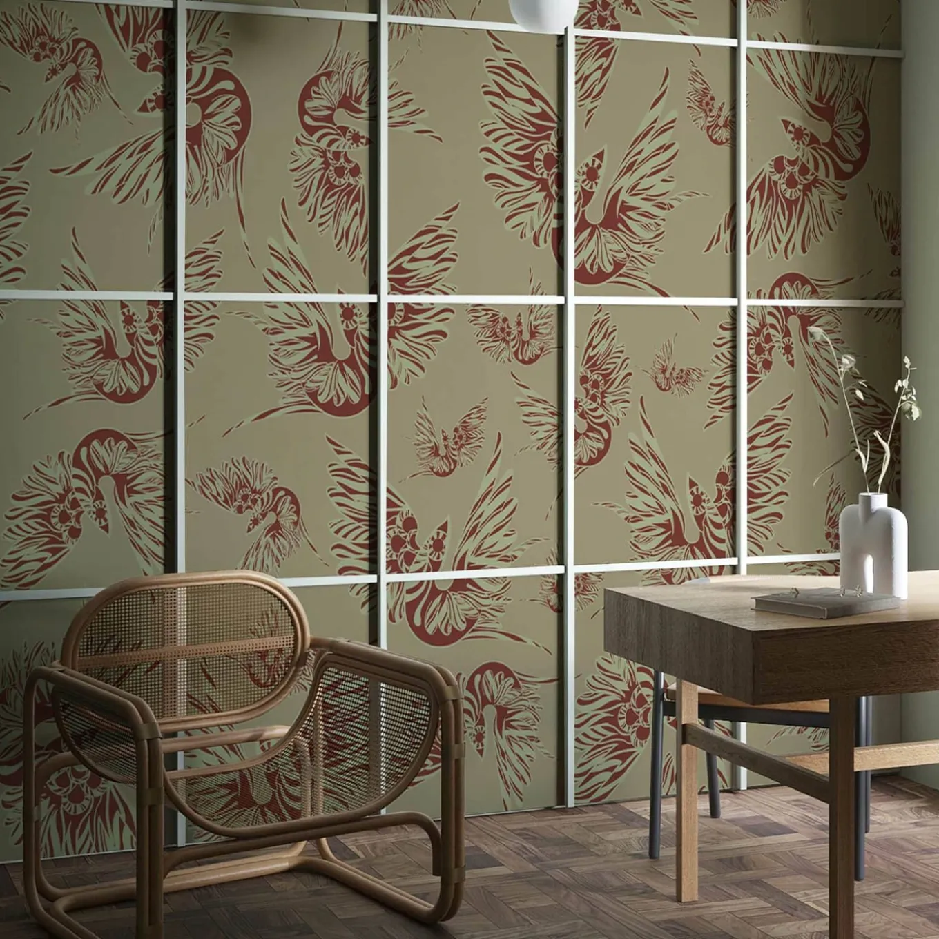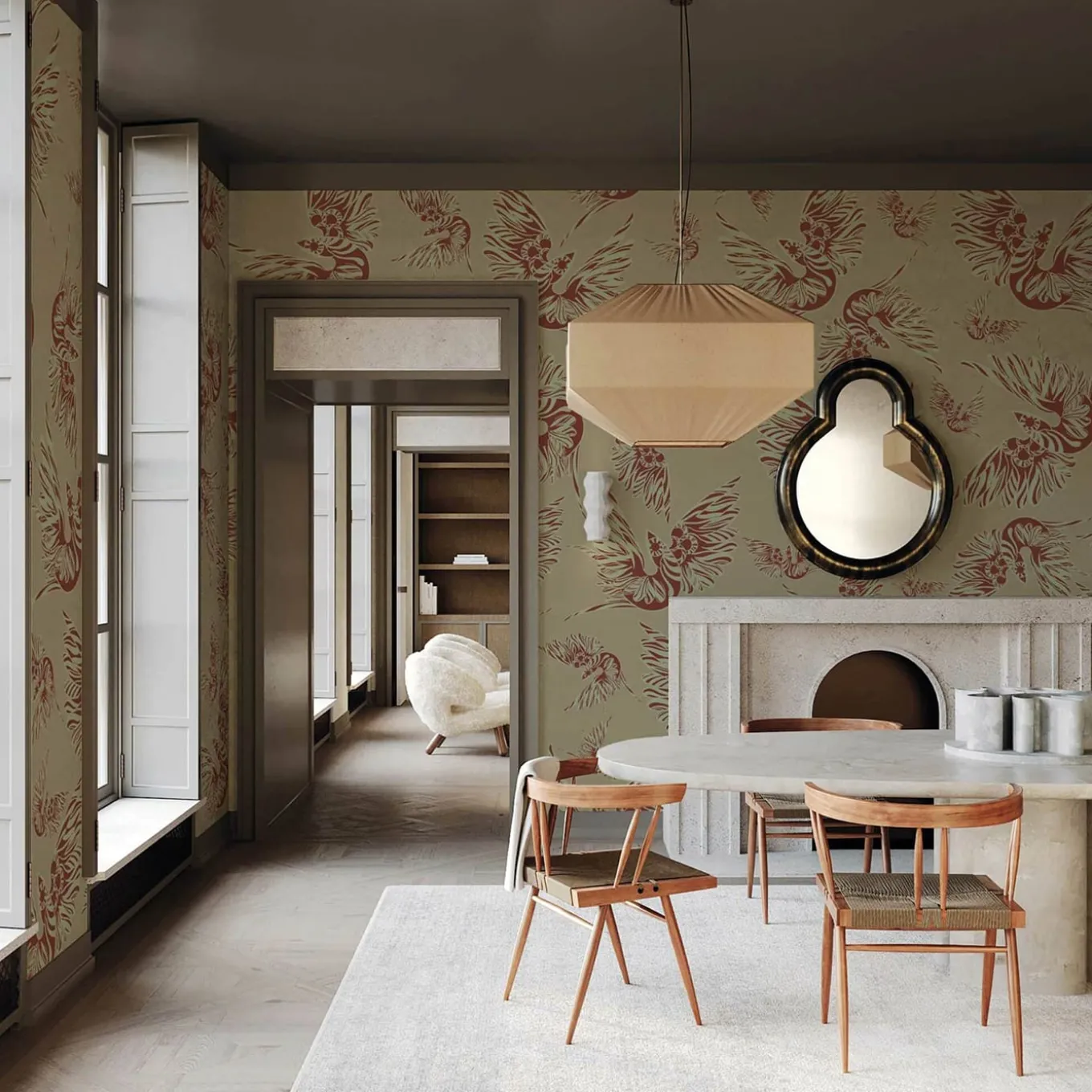 Inspired by the discovery of uniqueness and richness in every life, Leonardo Dini’s work emphasizes the importance of developing interiority and listening to the soul through conscience and supportive relationships. A tribute to those who still struggle today, Collection: Essenziali at Spazio Miscellanea by MaVoix VOL I features a beige background with Sienna subjects, priced per square meter. Printed on eco-friendly FINE ART Wallpaper with a matte finish, also available on CANVAS texture.