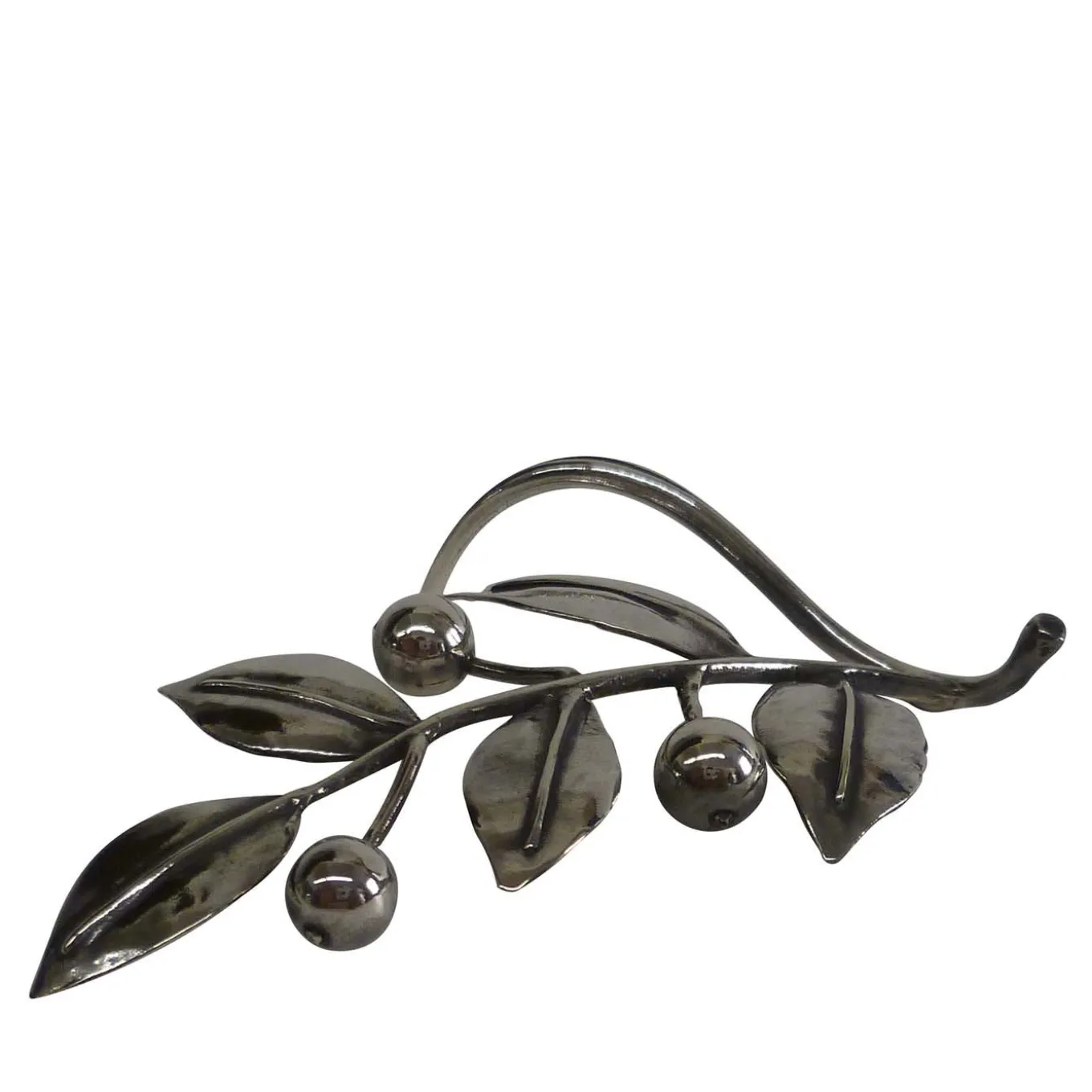 This elegant and festive seat marker is a delicate addition to the Christmas table, where it will be both an ornamental accent and a functional piece, thanks to a small cut at the base of the design, allowing to insert a place card if needed. Entirely crafted of silver, it is shaped as a small mistletoe branch, with its distinctive berries and dainty leaves. Paired with the Double Mistletoe Seat Marker, it will have a dynamic and sophisticated effect.