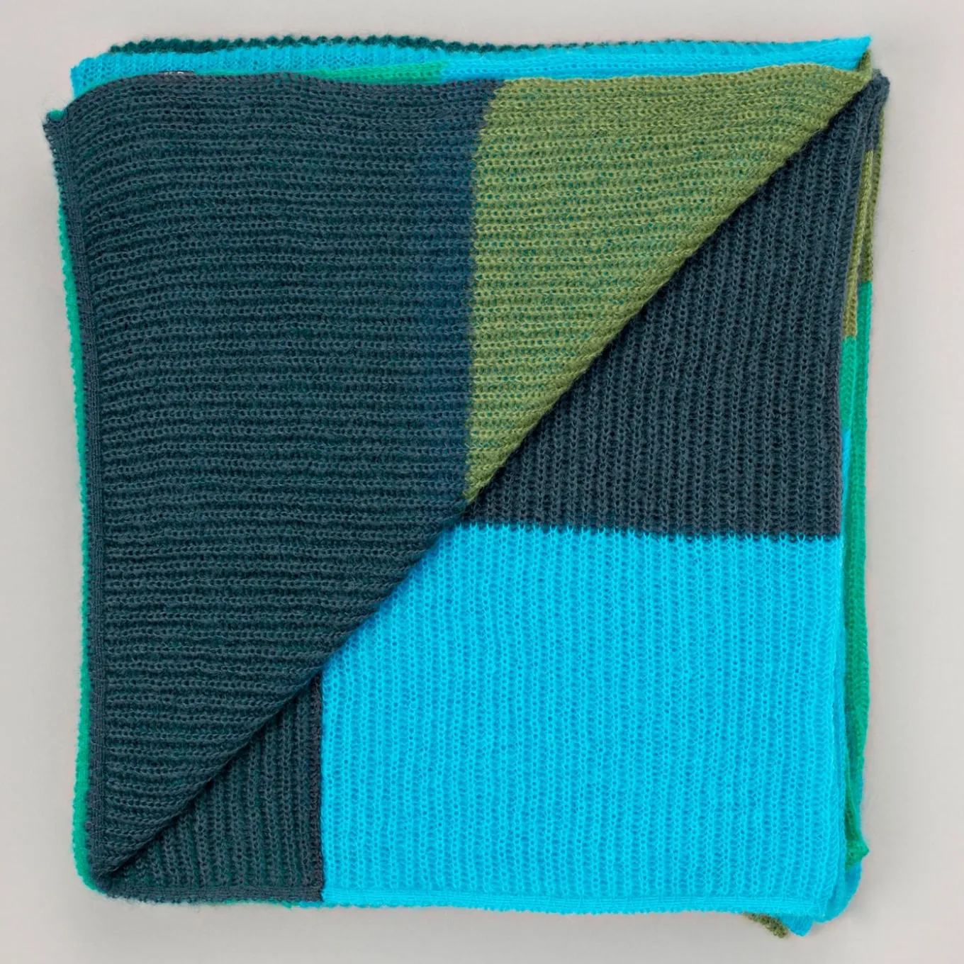 This glamorous blanket hued in vivid shades of blue and green will bring warmth and color to a dull, monochromatic sofa or armchair, revealing its stunning asymmetrical, pixel-like pattern when unfurled. Its English-style weft was obtained by employing mechanical looms from the ’30s, and sewing three clothes together by hand. Each piece of cloth flaunts a peculiar pattern combining five colors arranged in nine areas of different sizes.
