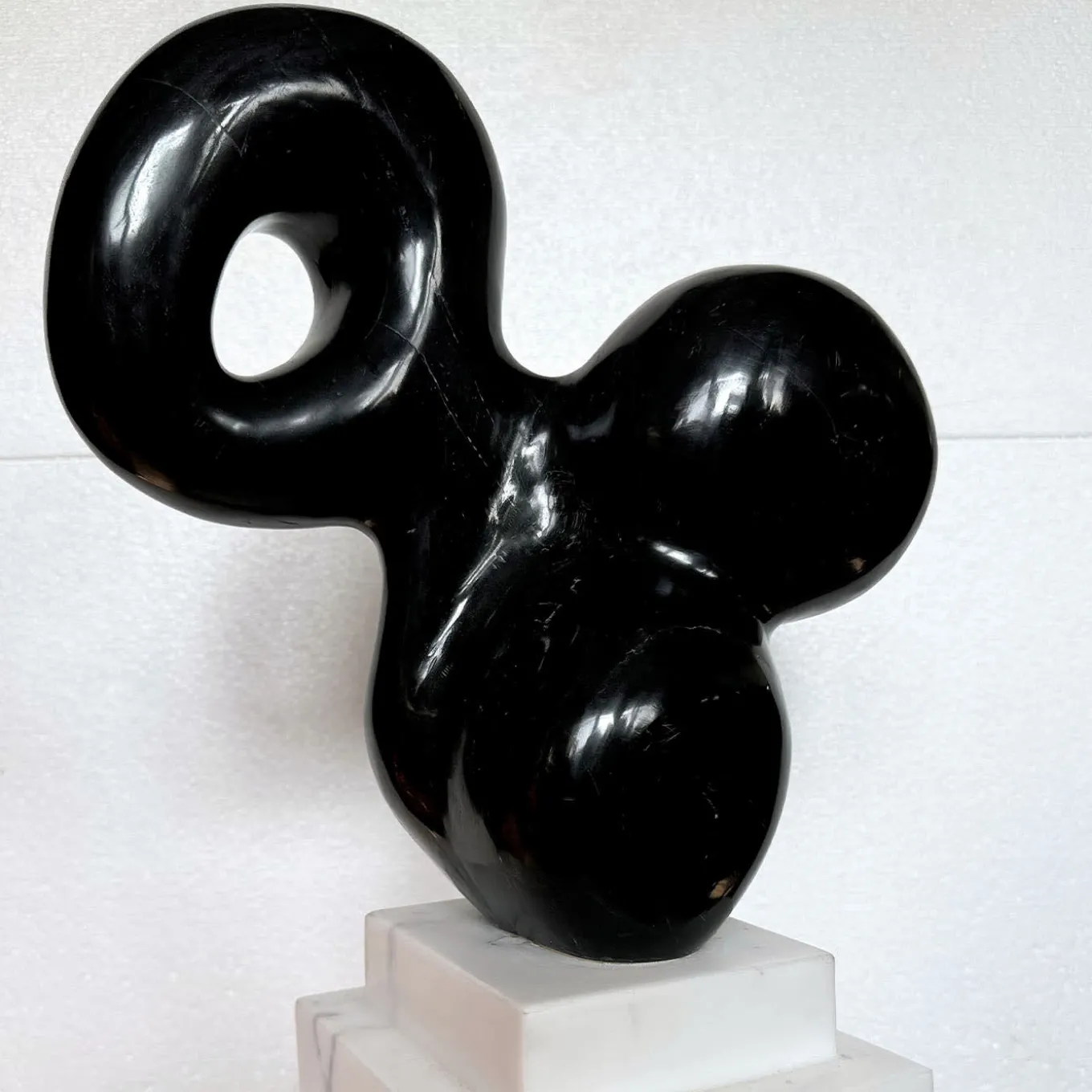 Part of the ESPIdesign Collection, this one-of-a-kind Molecola sculpture captivates with its organic curves and bold silhouette. Crafted in luxurious Nero Marquina marble and mounted on a sleek Carrara marble base, it evokes fluidity and elegance. Each piece is handmade with meticulous attention to detail, ensuring that no two sculptures are alike. It’s a unique piece. Molecola is both a modern art statement and a celebration of natural beauty.