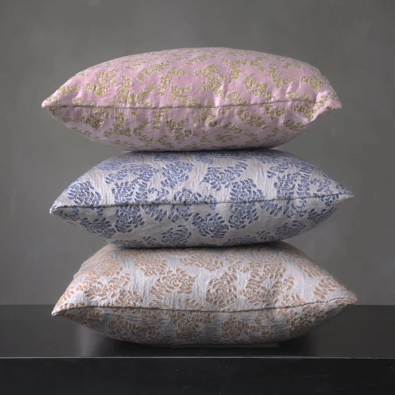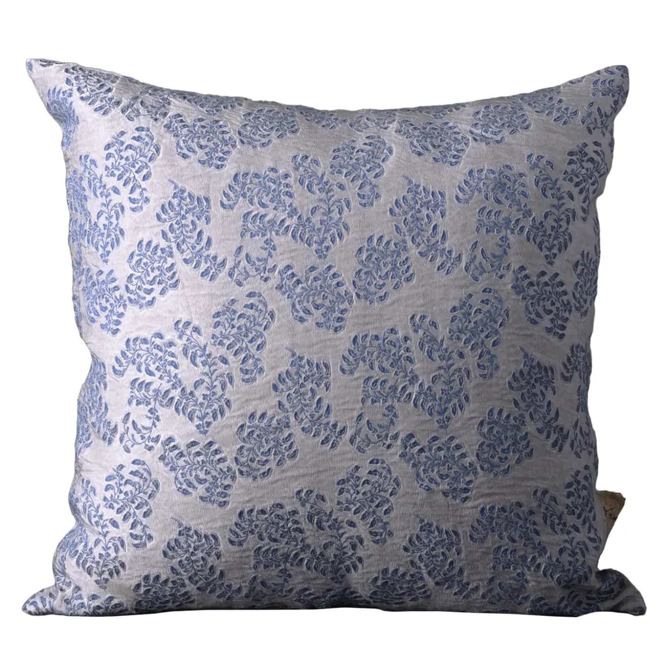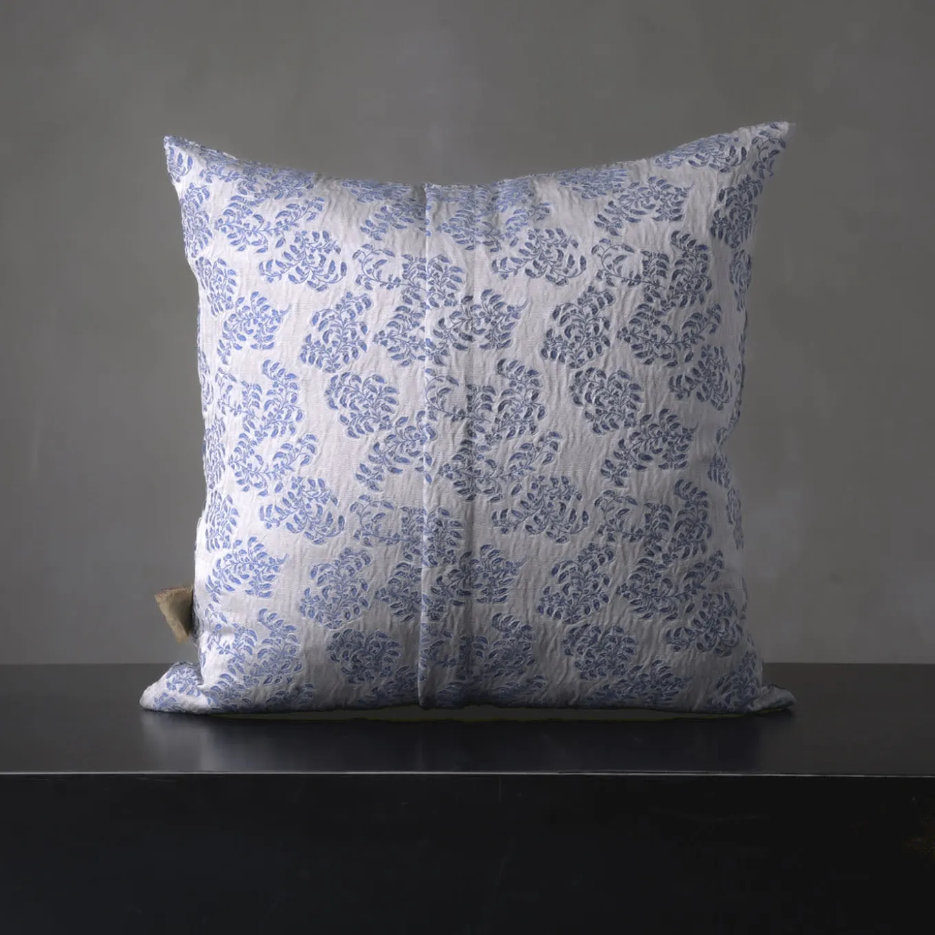 An intricate floral motif emerges neat in its relaxing blue tone against the silvery backdrop of this superb square jacquard cushion. Elegant and romantic, it will accent throw sets and sofas with an extra dash of brightness and femininity, an effect that can be reinforced by the rectangular counterpart available in the Artemest catalog.