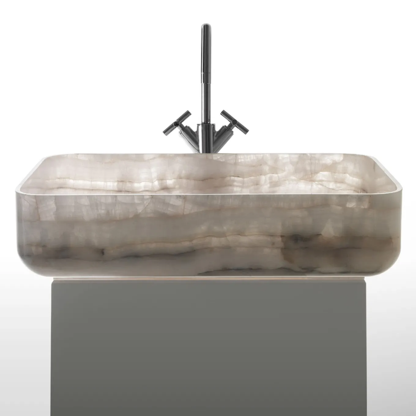 Characterized by a classic rectangular shape smoothly rounded on the corners and edges, this stunning washbasin from the Nabhi Collection exudes timeless sophistication and a versatile flair. Handcrafted of natural marble stone, it is available in other marble types upon request. Please consult the Concierge for further information.