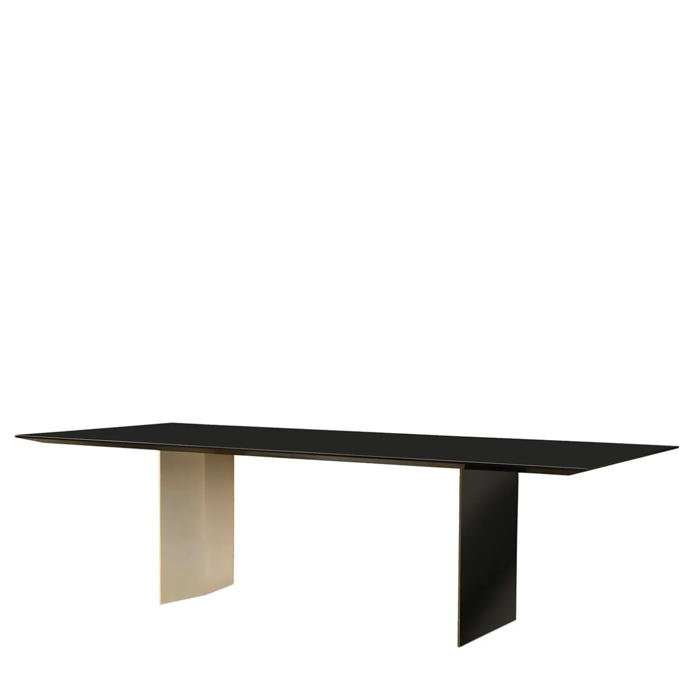 Nathat in an Italian handmade dining table inspired by the Matrix collection of consoles, recalled by the extra thin tops and the metal legs with triangular section. The use of special finishes enriches the clean, elegant lines of the table, almost recalling the sartorial precision of a made-to-measure suit. The outer side of the legs is in the same finish (black crackled lacquer) as the top. Available in different finishes. Please contact the Concierge service.