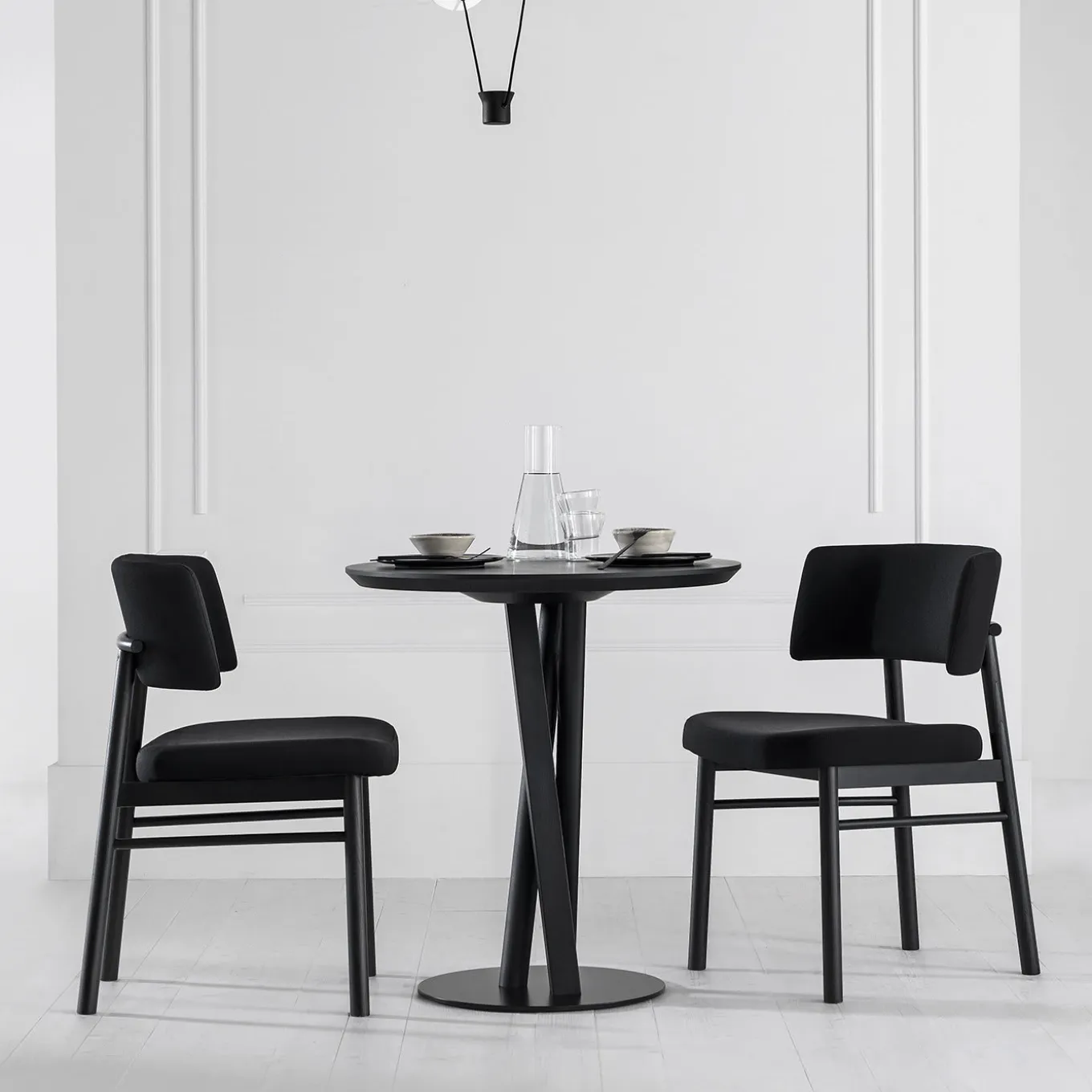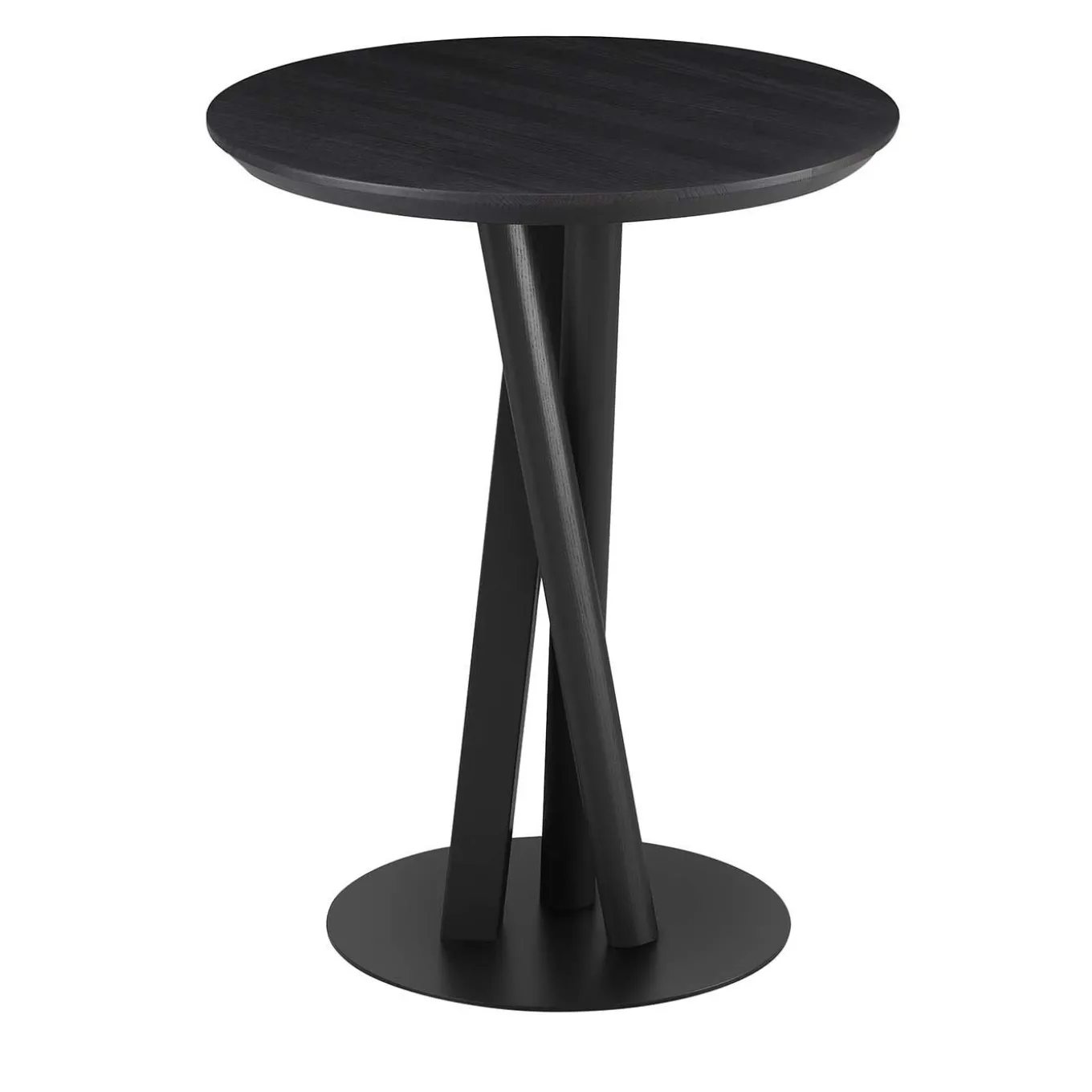 Boasting an elegant total-black look, this side table is ideal for both residential and commercial interior decors. The innovative structure features three crisscrossed legs boasting different geometric silhouettes: round, oval, and squared, for a superbly eclectic look. The round platform in metal recalls the round top, and the whole structure is crafted of solid ash wood. The piece is customizable in height and shape of top upon request, ask the Concierge for details.