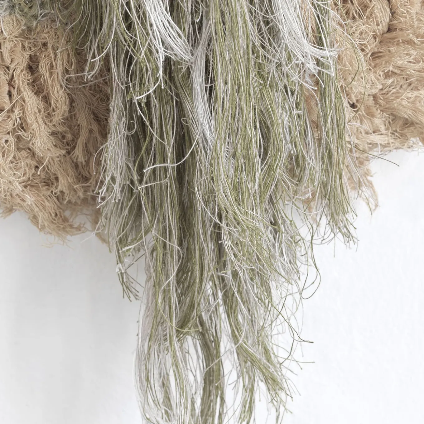 One-of-a-kind creation that is a pure expression of autumn’s warmth, this tricolored tapestry showcases handwoven selvages and fringes sourced from the finest Italian textile industry remnants. The rich, earthy tones blend seamlessly, capturing the season’s essence. Exhibited in Bolzano and Buchillon (Switzerland), this unique piece exemplifies sustainable craftsmanship and artistic sophistication.